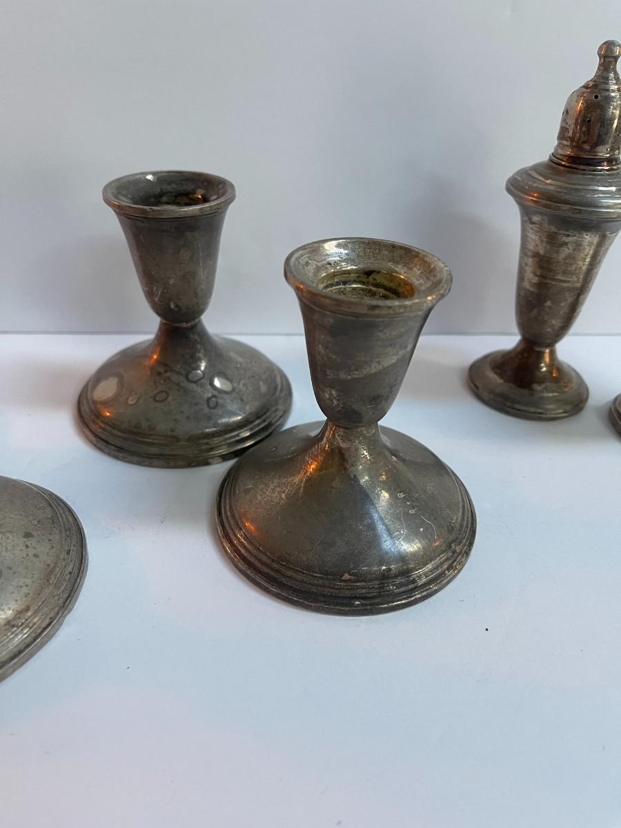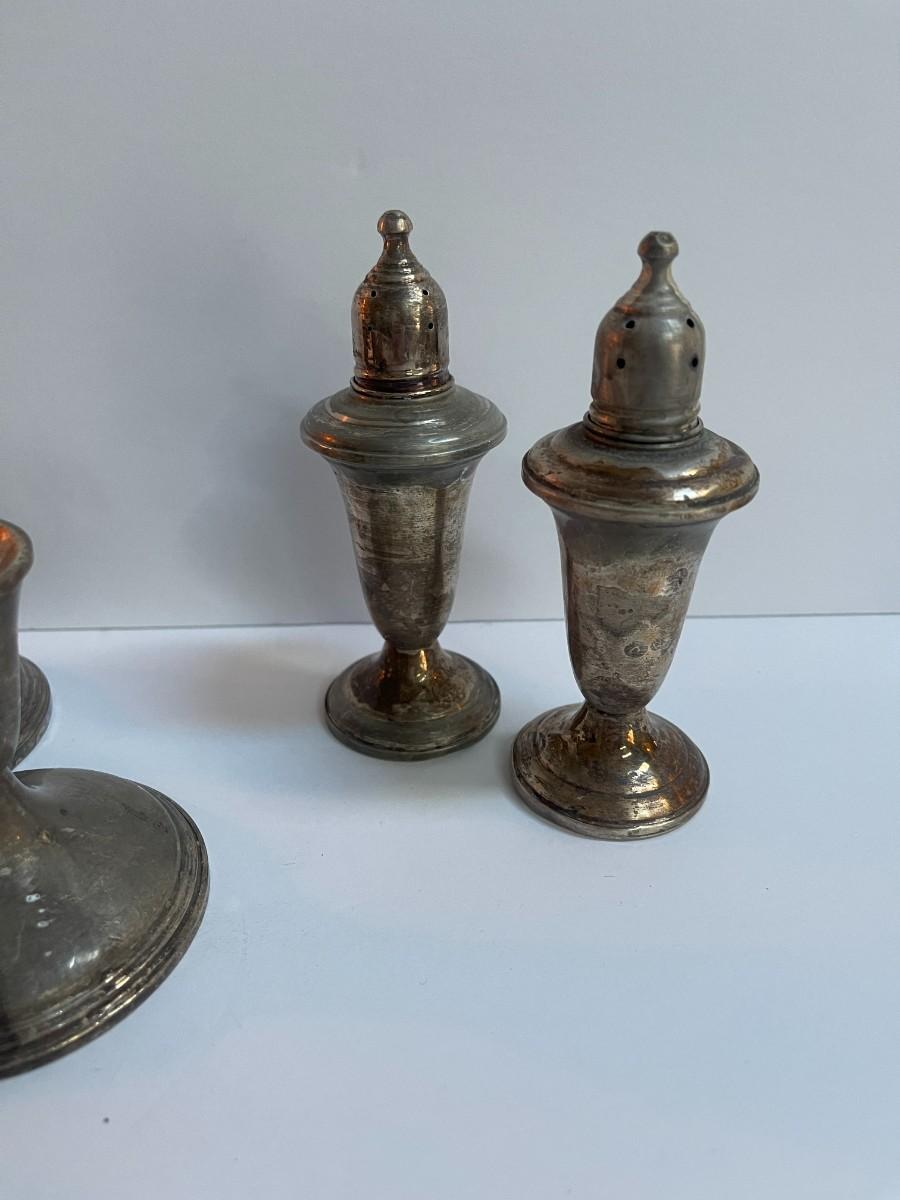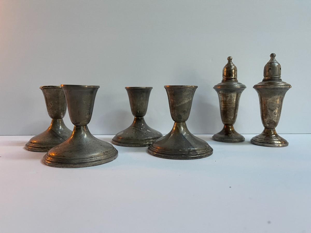 3 Sets of Vintage Empire Weighted Sterling Silver Candle Sticks and Salt & Pepper Shakers