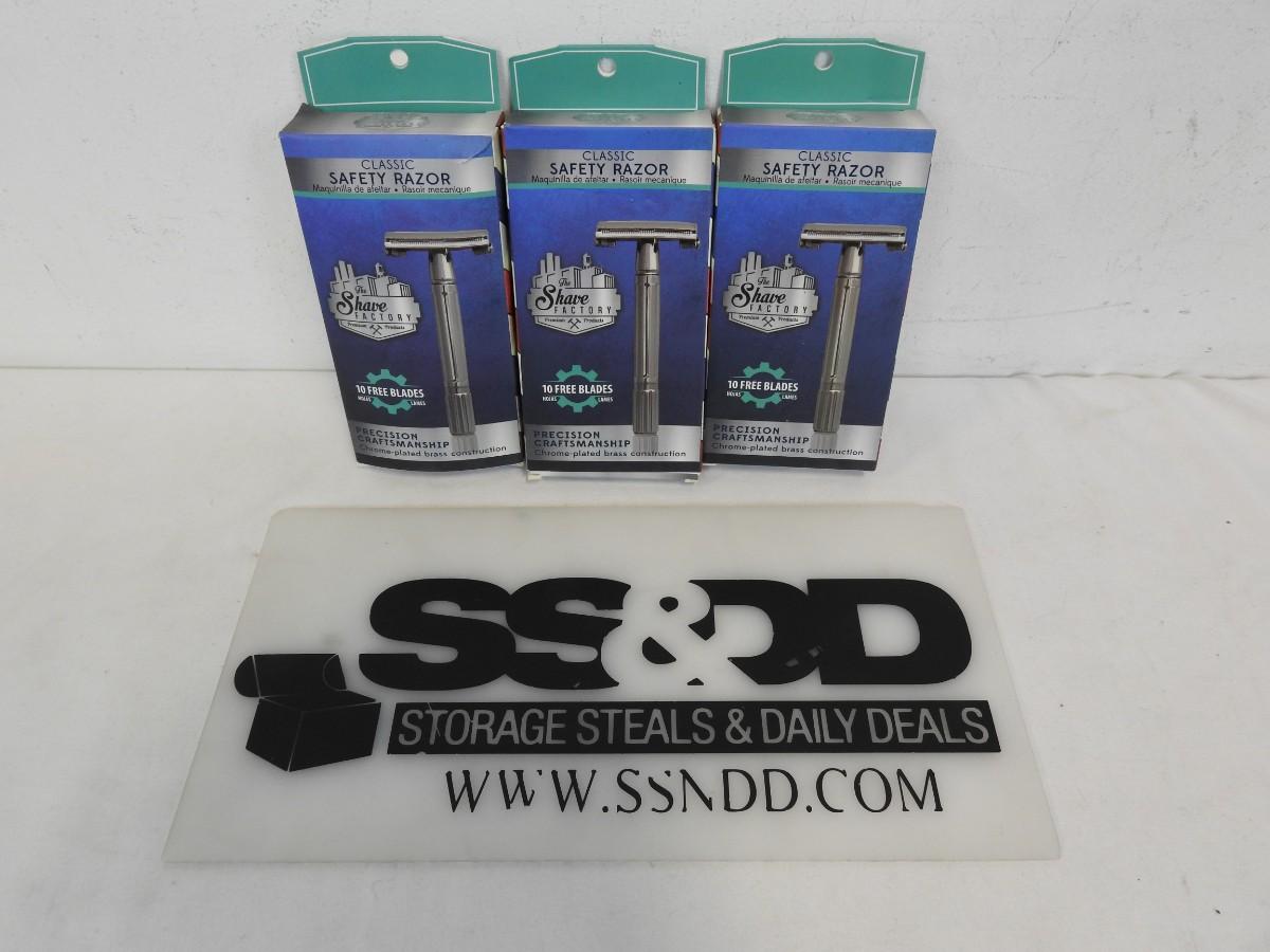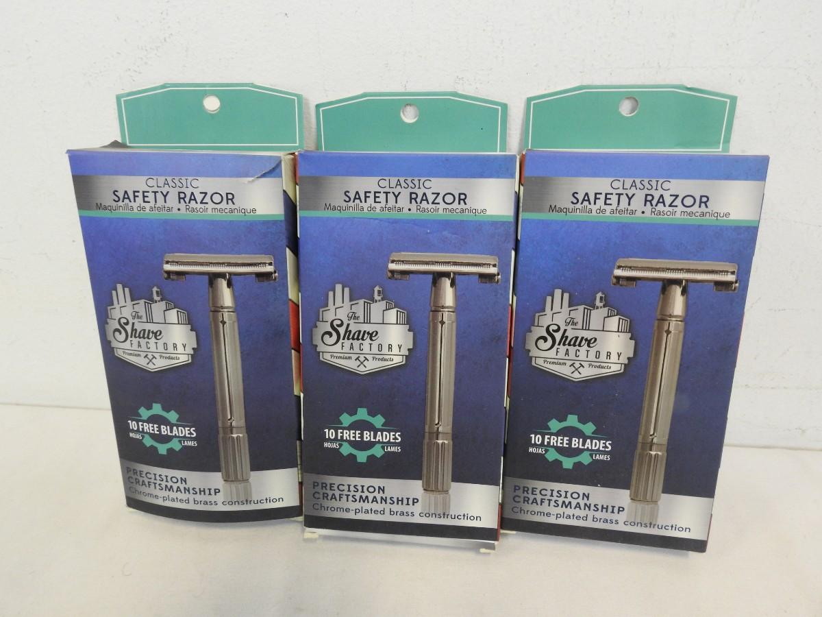 3 Shaving Factory Twist To Open Double Edge Safety Razors and 10 Blades Each New