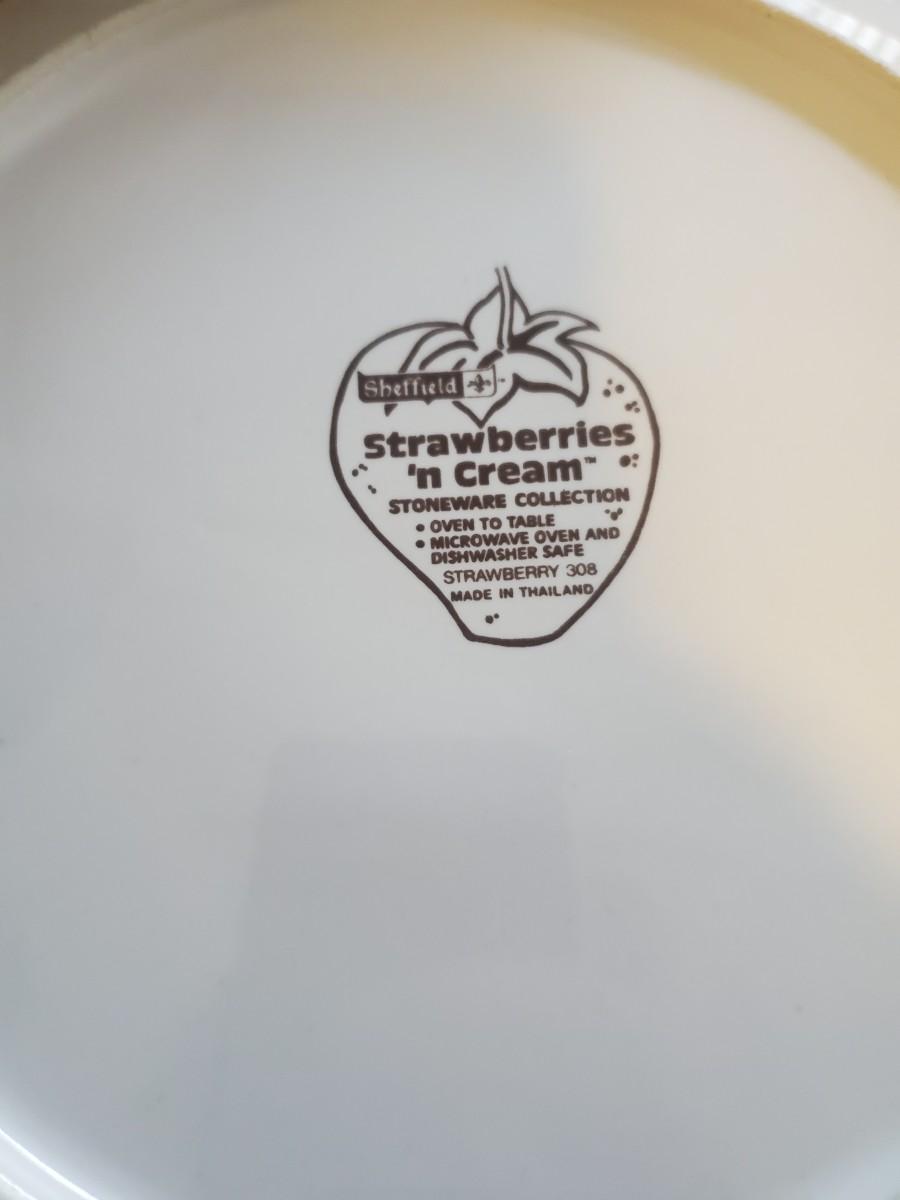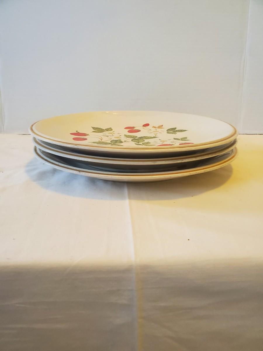 3 Sheffield Dinner Plate Strawberries N Cream Stoneware 10 5/8" diameter