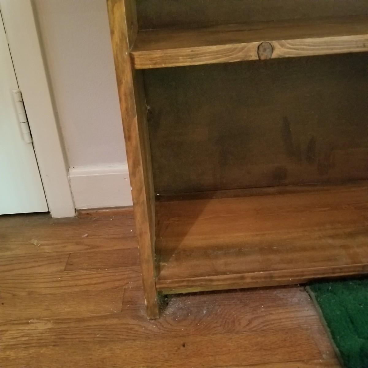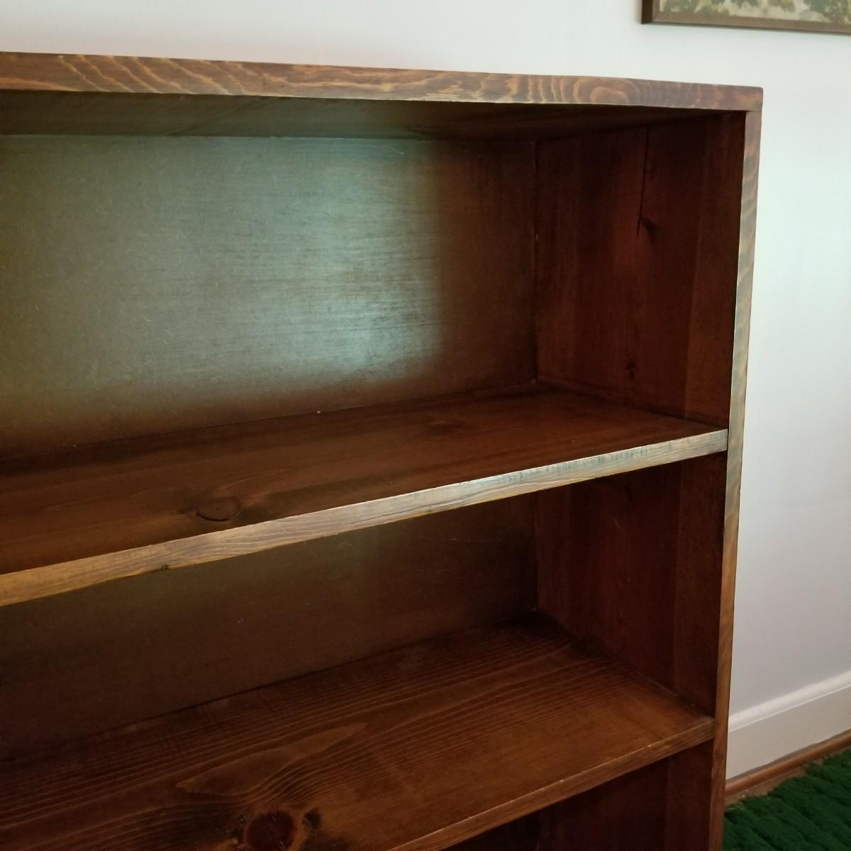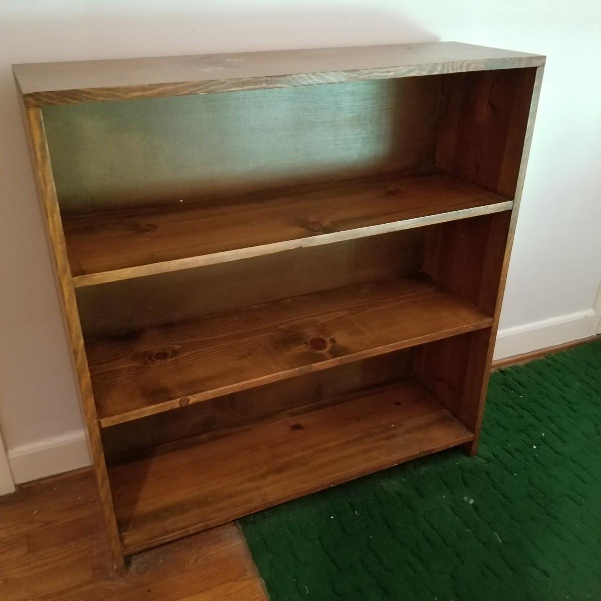 Solid wood three shelf bookcase. Back of case is not solid wood. Shelves are fixed and not adjustable. Unit measures 36" x 11" x 38".  Local pickup only.