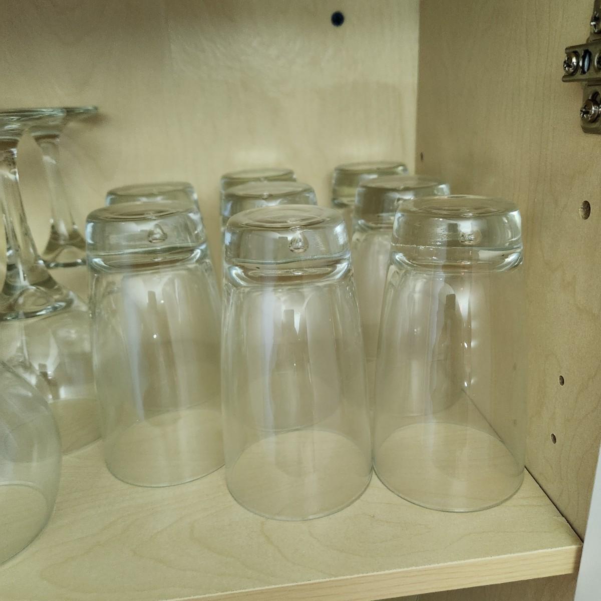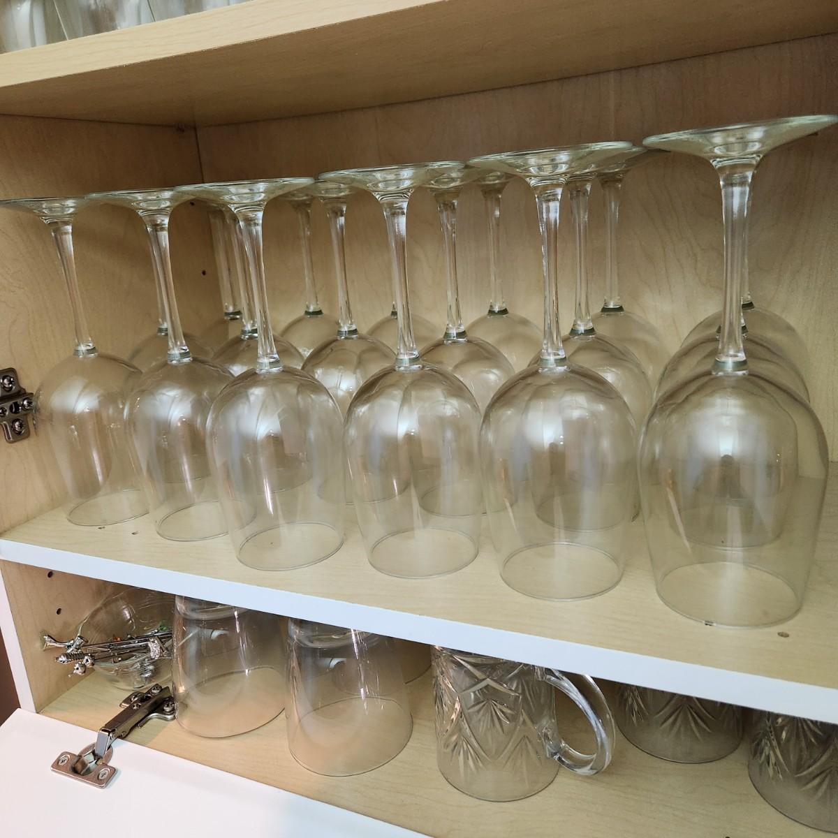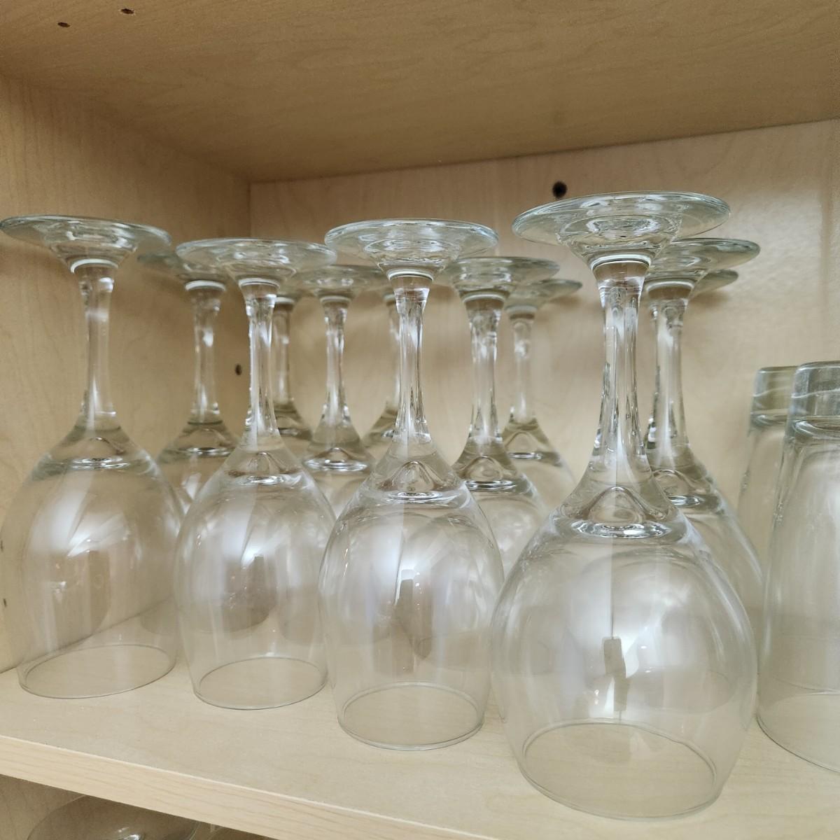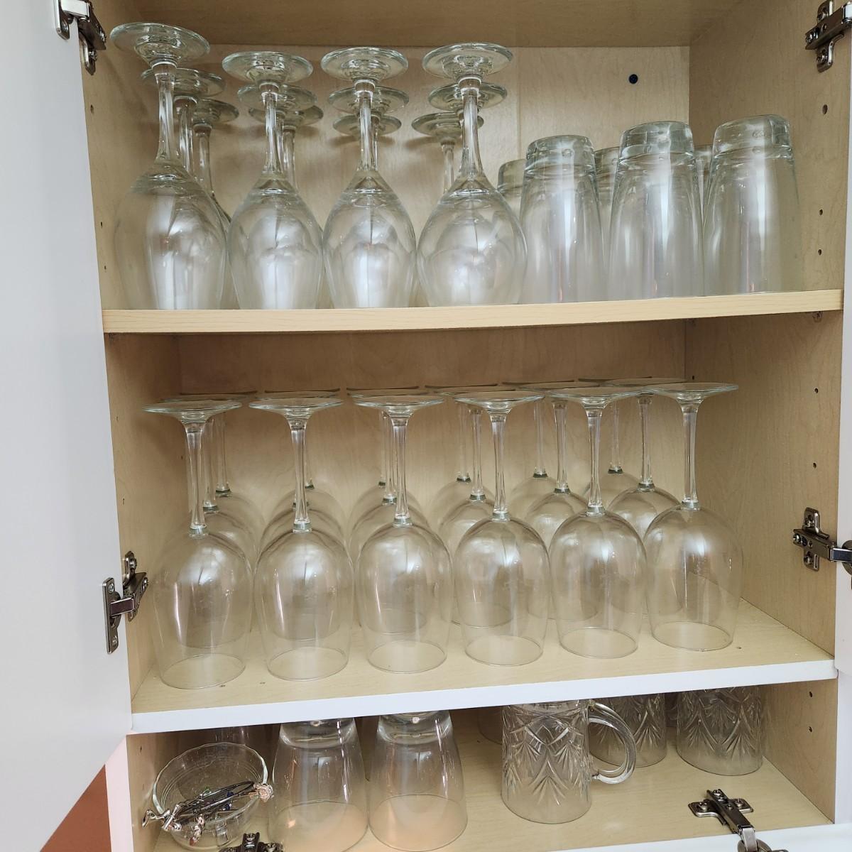 3 Shelves of Clear Barware Drinking Glasses Wine Highball Lowball Mugs