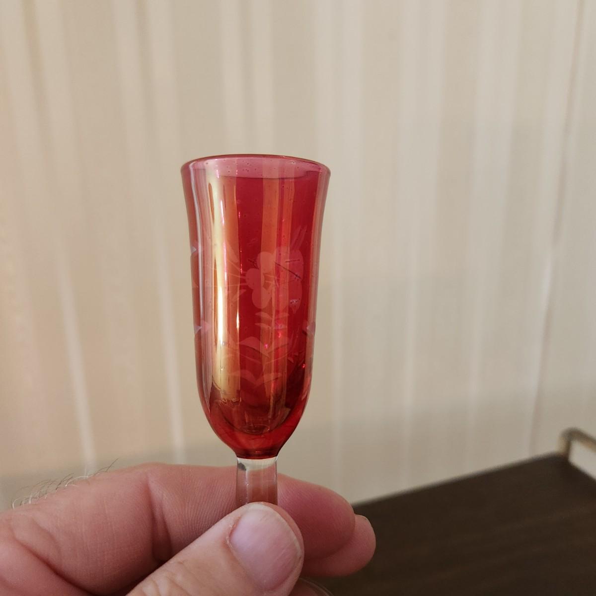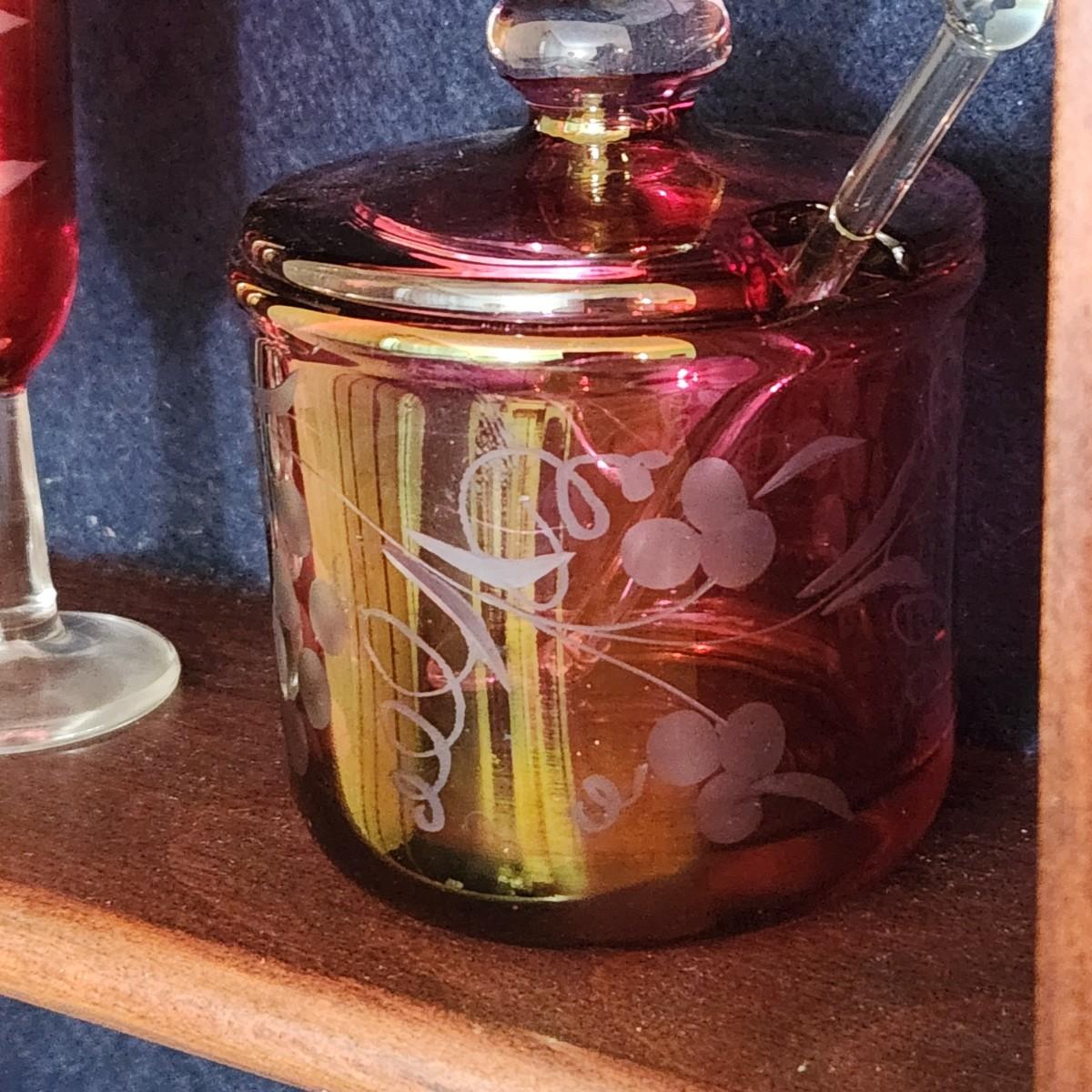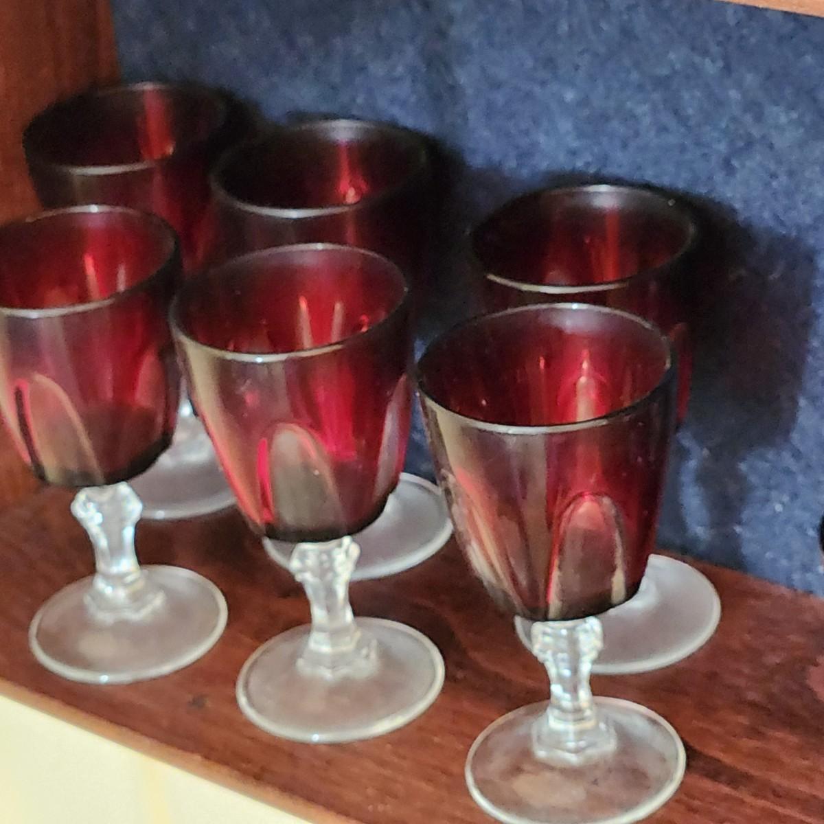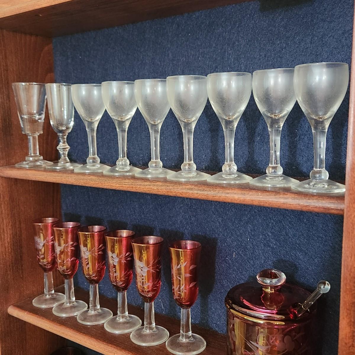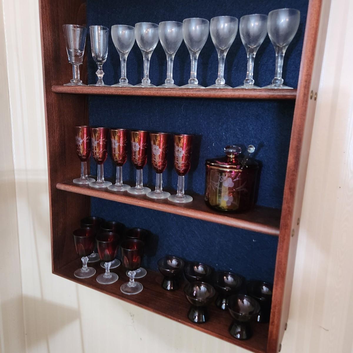 3 Shelves of Glasses Clear Etched Red Cranberry
