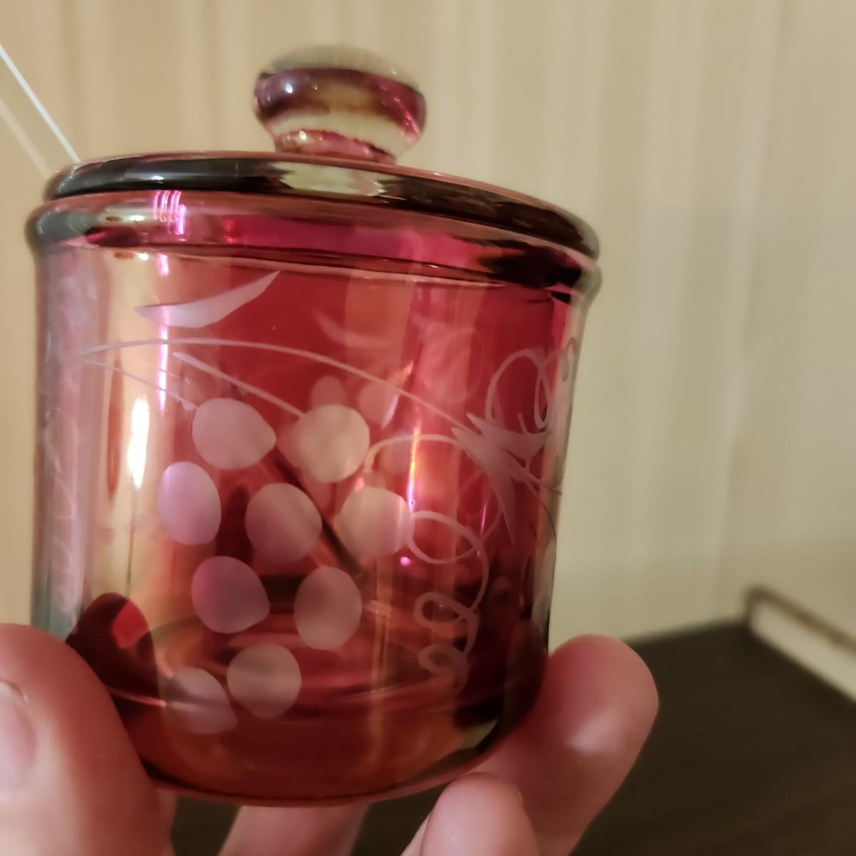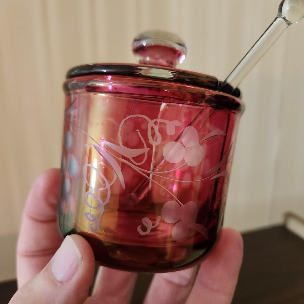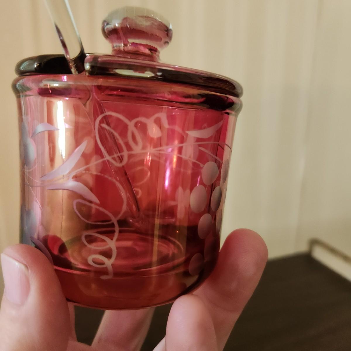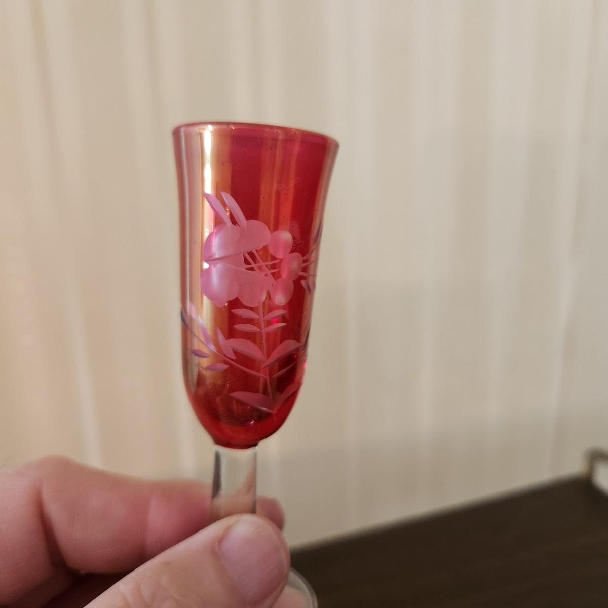 3 Shelves of Glasses Clear Etched Red Cranberry