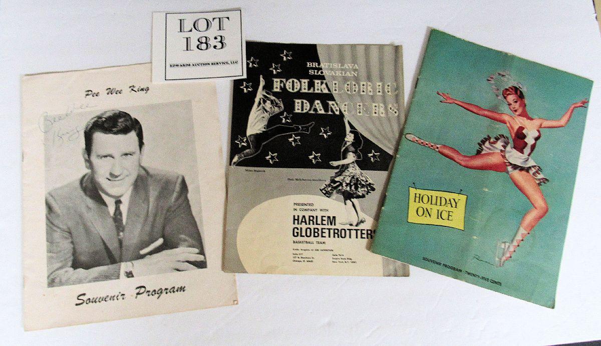3 Show Programs: Autographed Pee Wee King and Others, Holiday on Ice and Folklore Dancers and Globetrotters