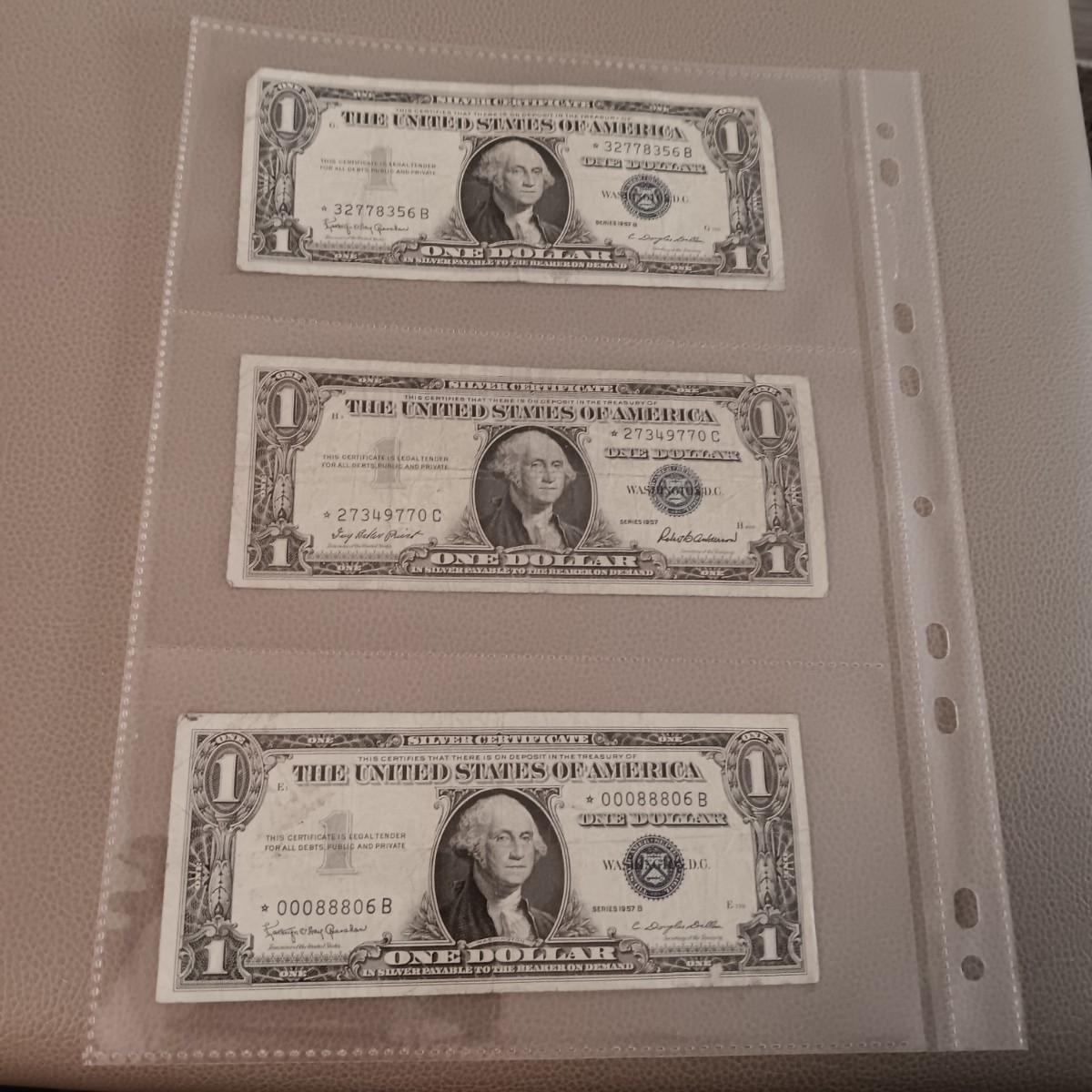 3 SILVER CERTIFICATE DOLLAR BILLS