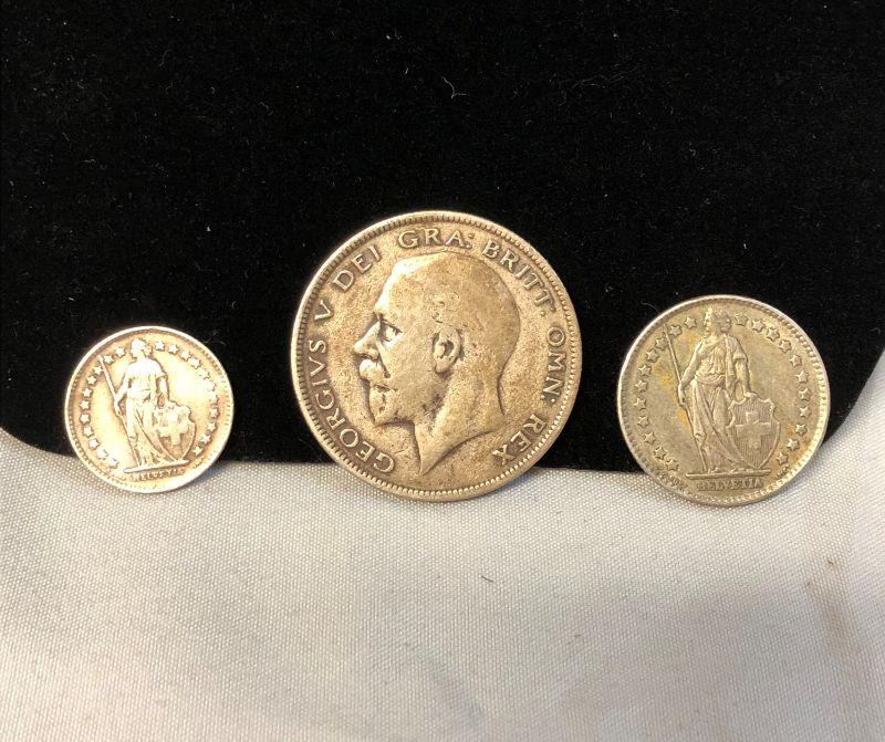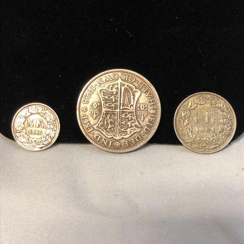 My online research (I am not an expert) indicates that these are silver which is why I am listing them as such. Please bid accordingly as I am not an expert and these have not been professionally graded. 1946 1/2 Franc from Switzerland, 1961 Franc from Switzerland, 1928 1/2 Crown from Great Britain. Please see picture for details.