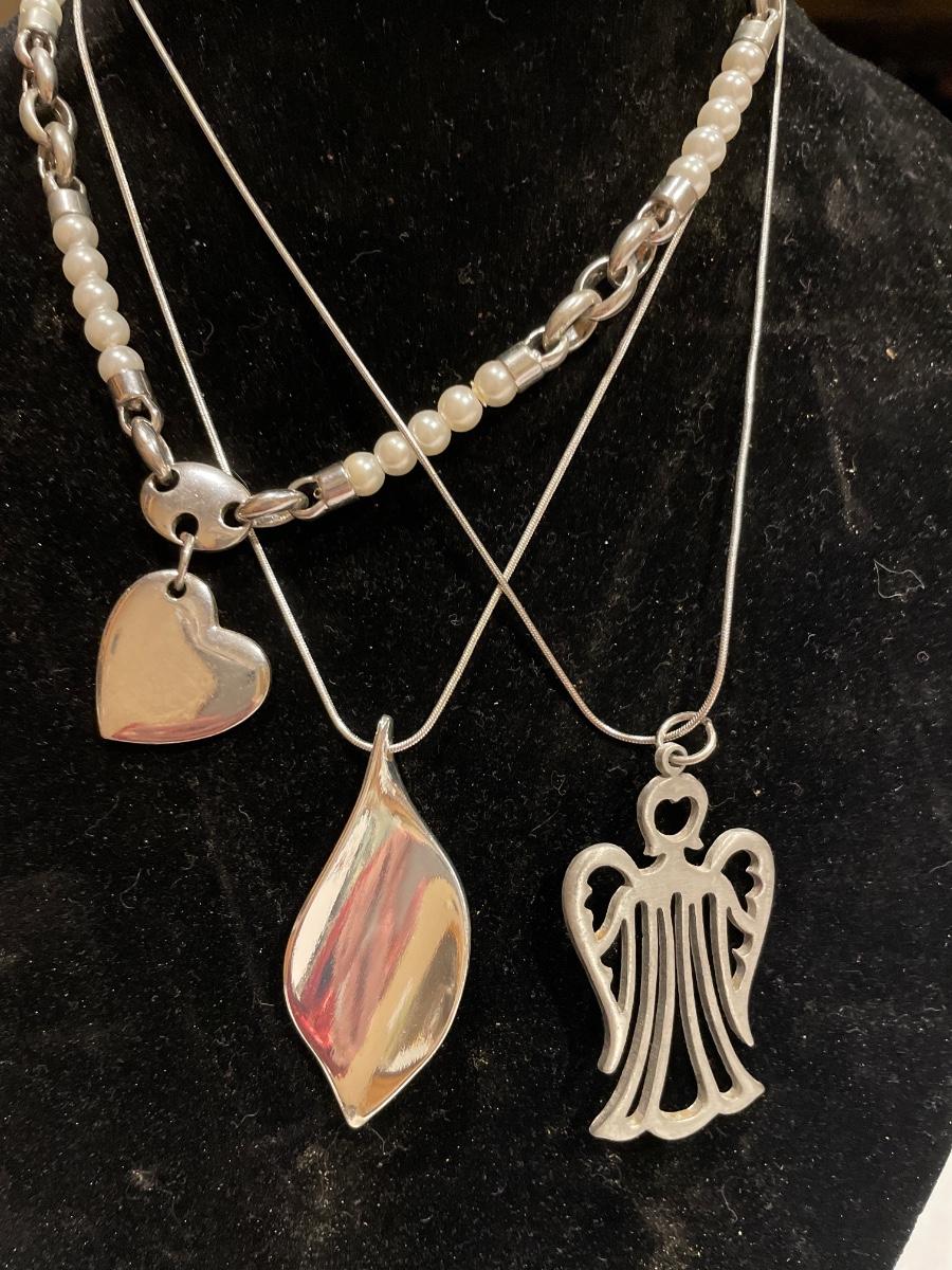 3 silver tone necklaces