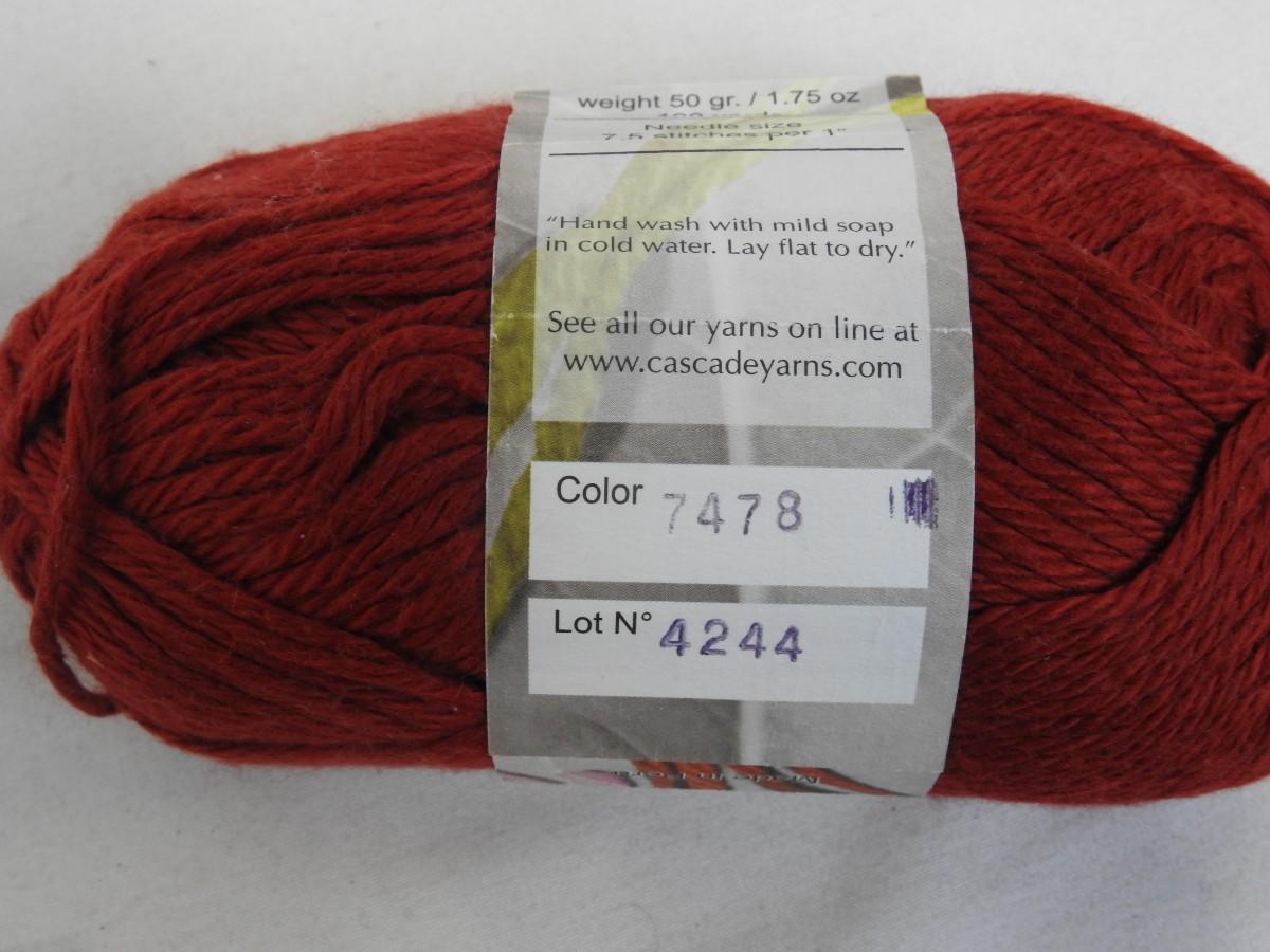3 Skeins Brick Red #7478 Yarn by Cascade Fine Yarns Pima Tencel 50 gr each - New
