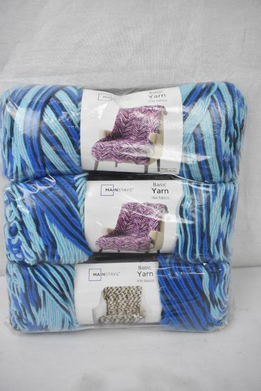3 Skeins of Yarn. Variegated Shades of Blue, 5 oz each - New
