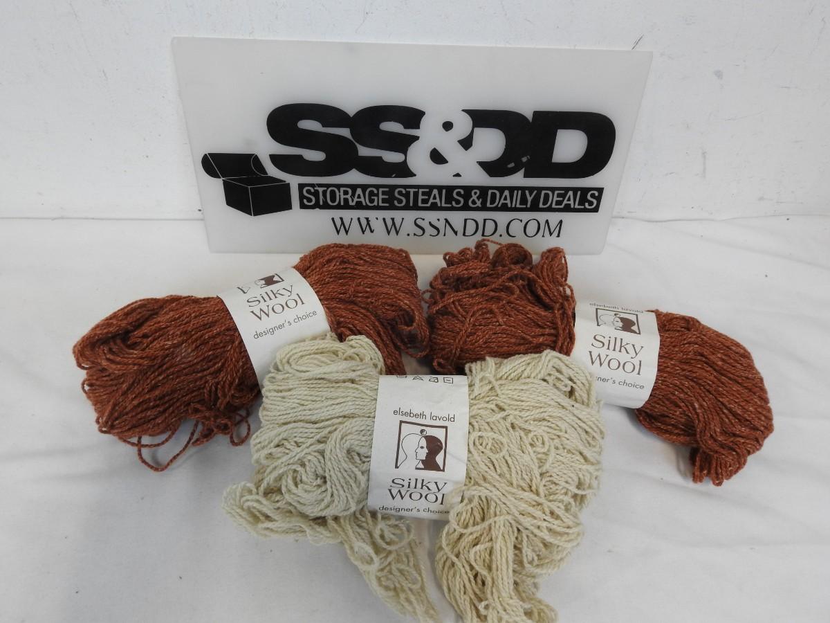 3 Skeins "Silky Wool" Yarn Made in Italy (2) Warm Orange & (1) Cream/Tan - New