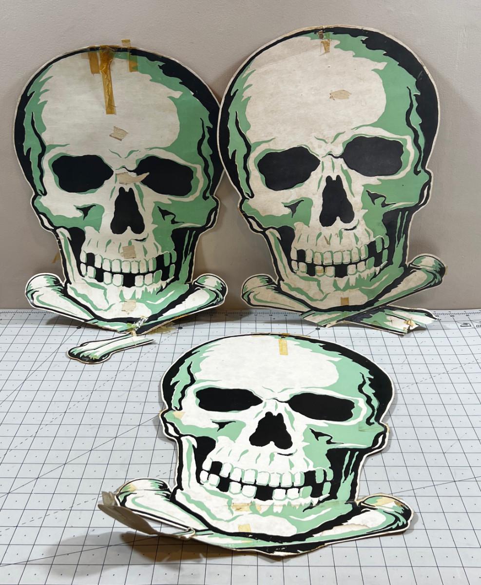 3 Skeleton Heads by Merri-Lei Paper with Tape