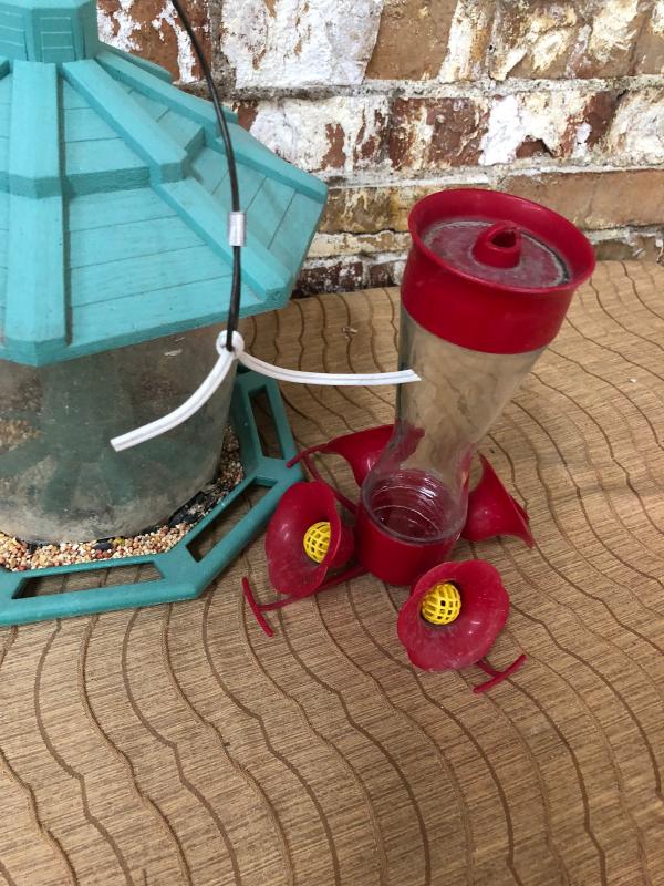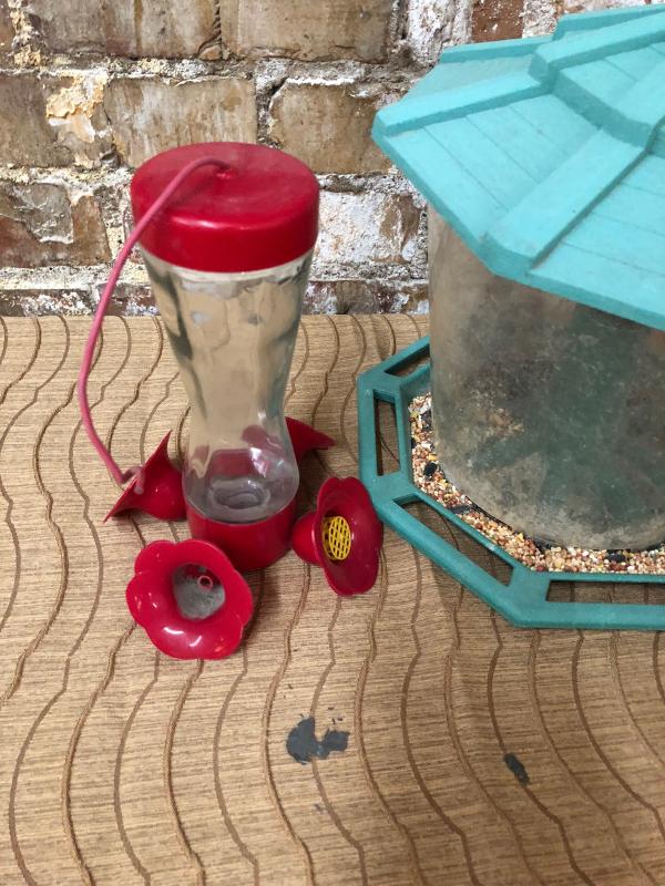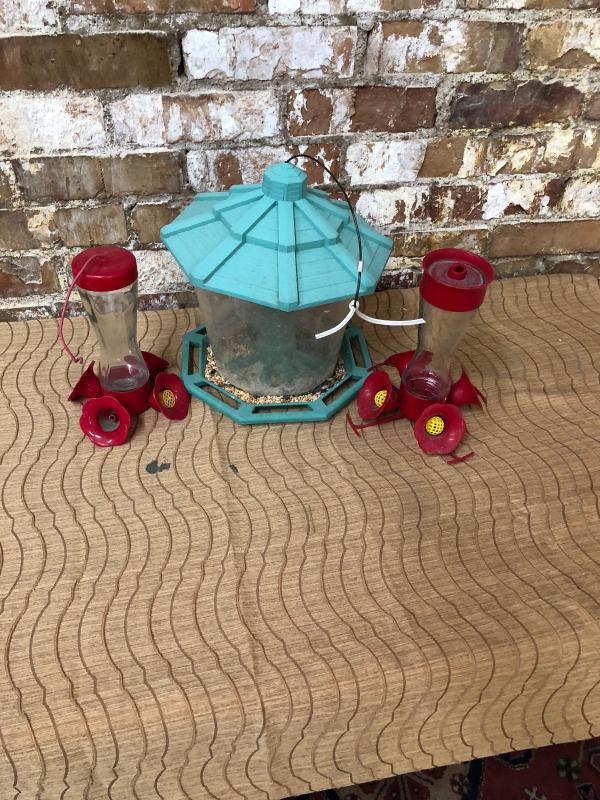 Here is a small bird feeder as well as a pair of hummingbird feeders...Good condition...