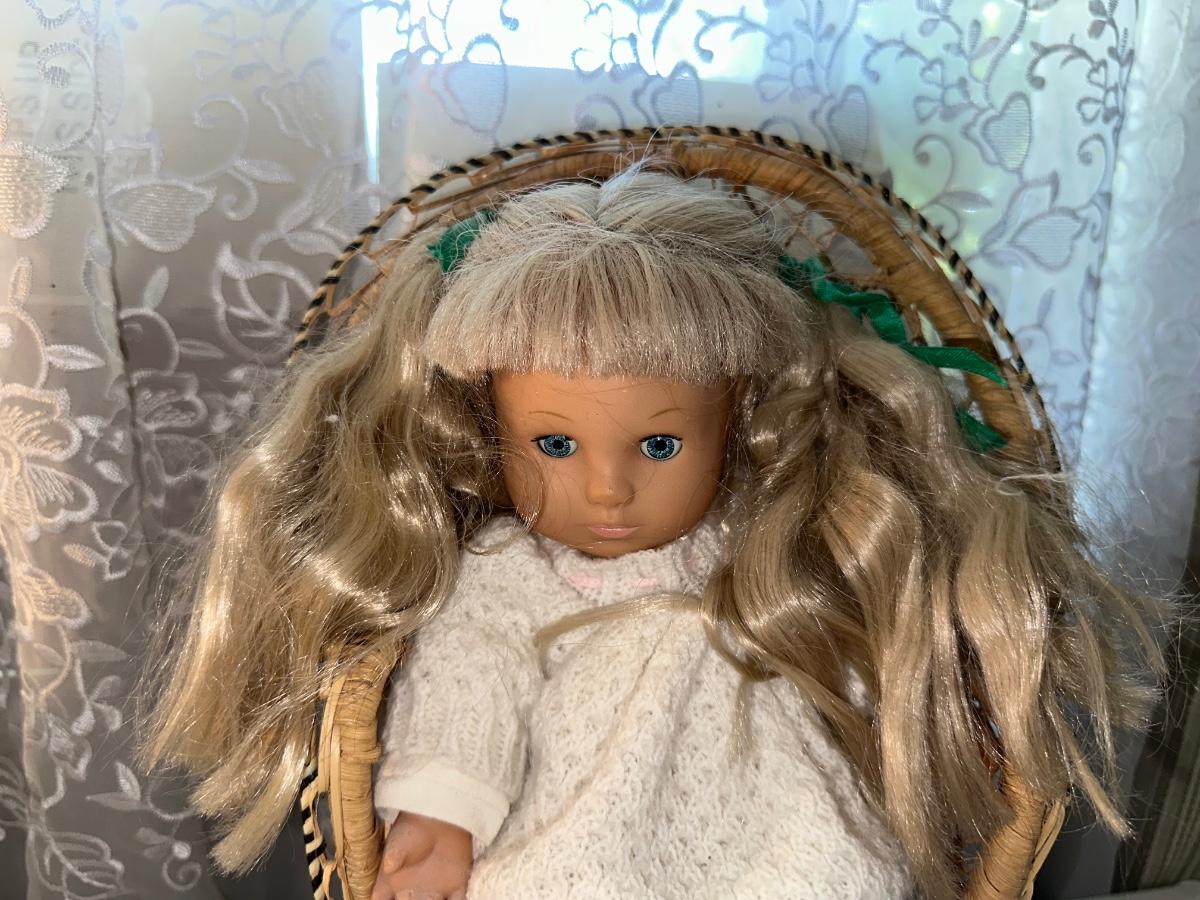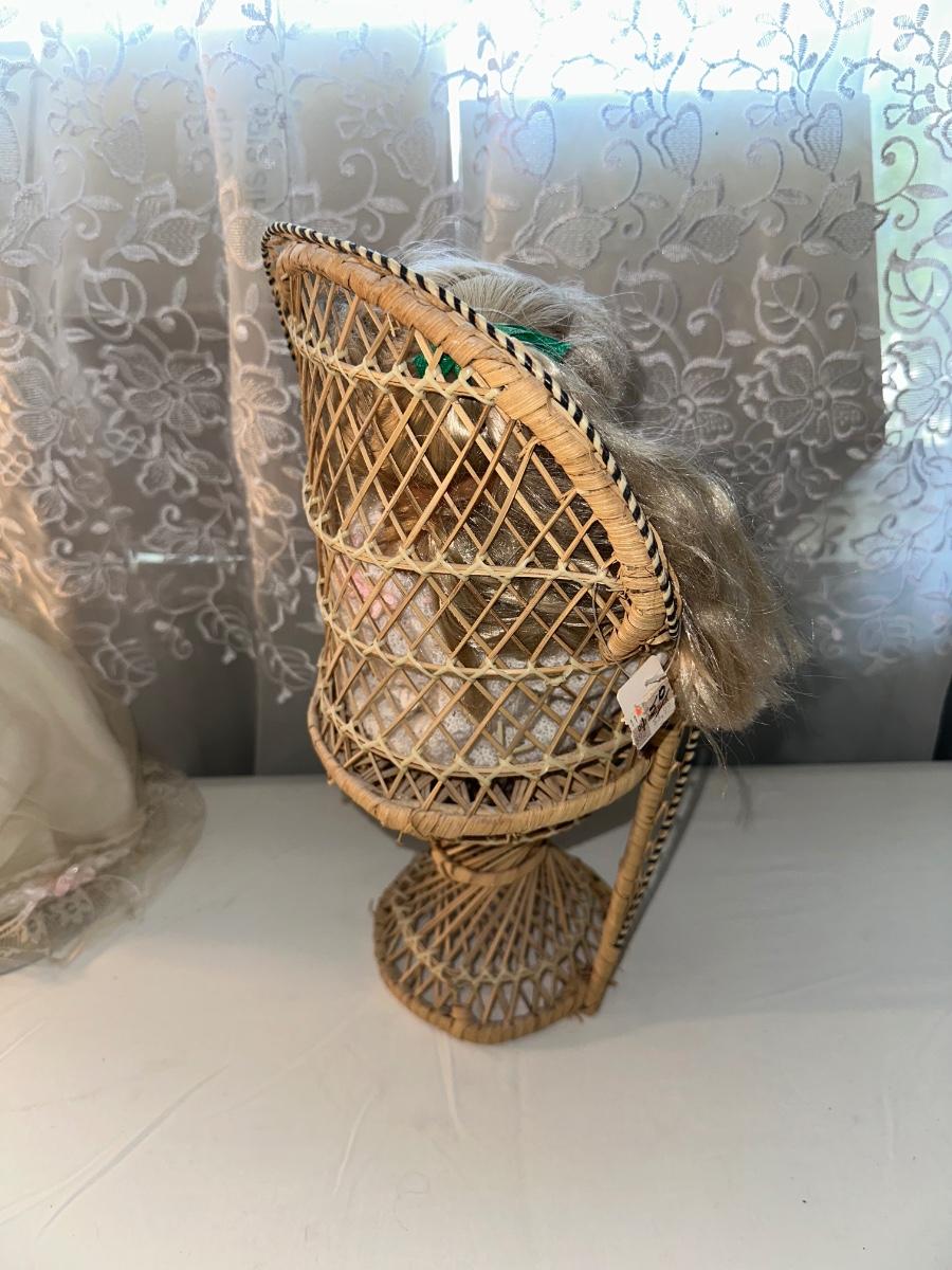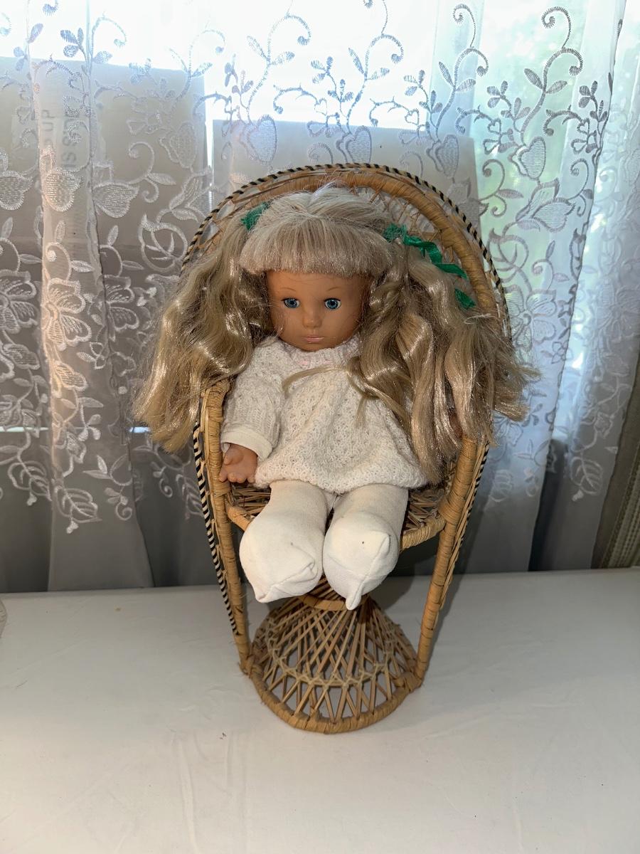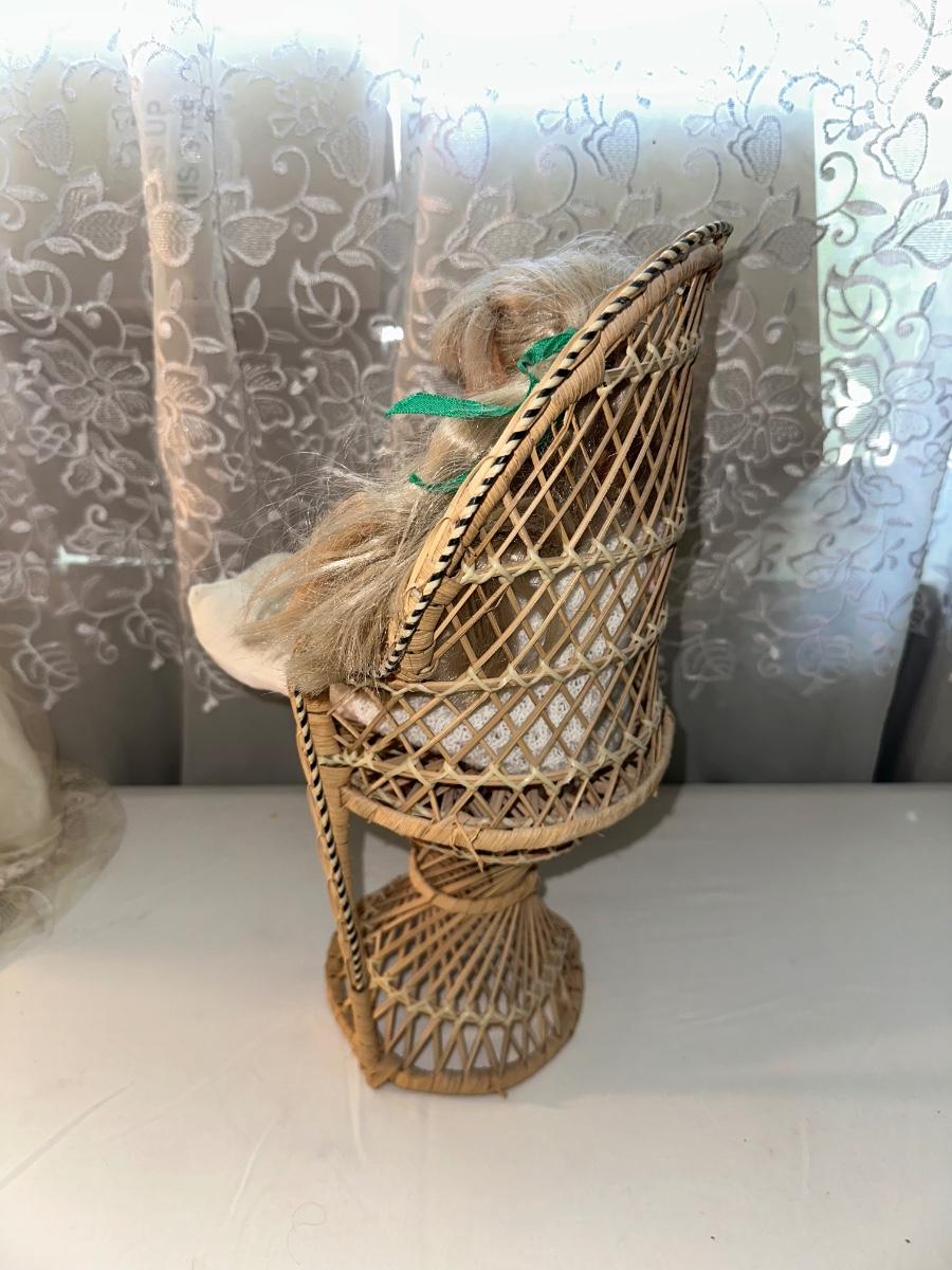 3 SMALLER DOLLS PLUS A WICKER DOLL CHAIR