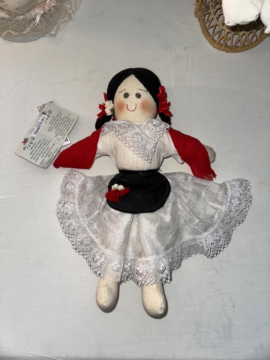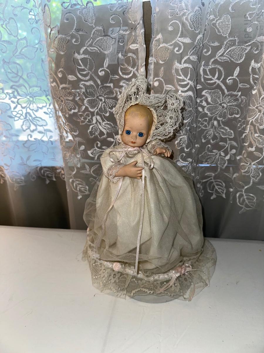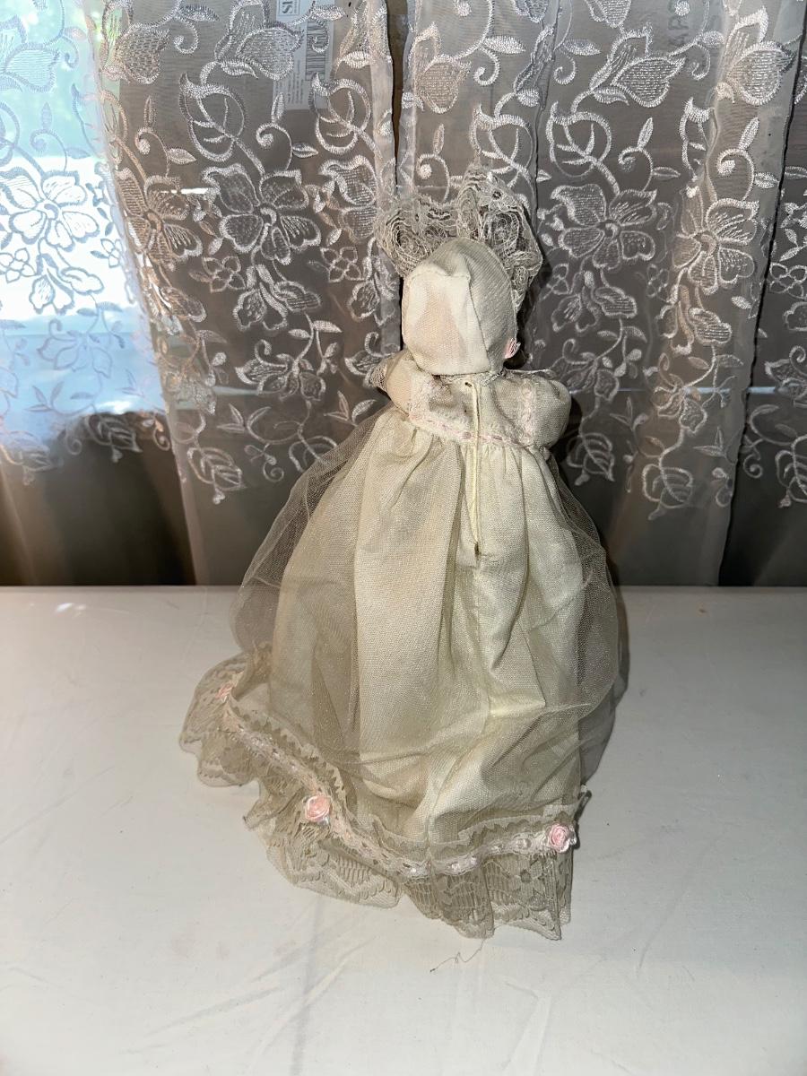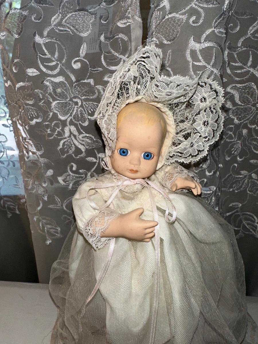 3 SMALLER DOLLS PLUS A WICKER DOLL CHAIR