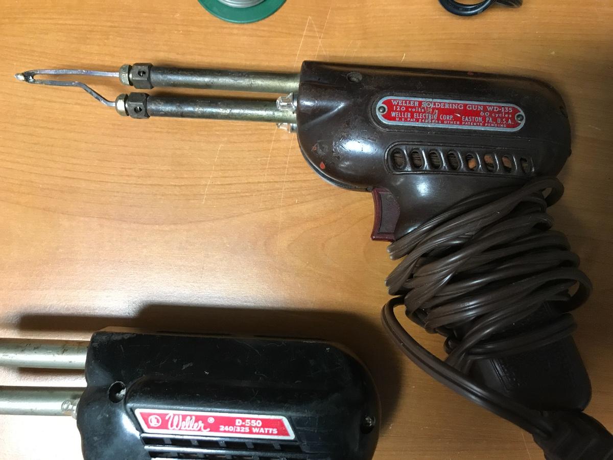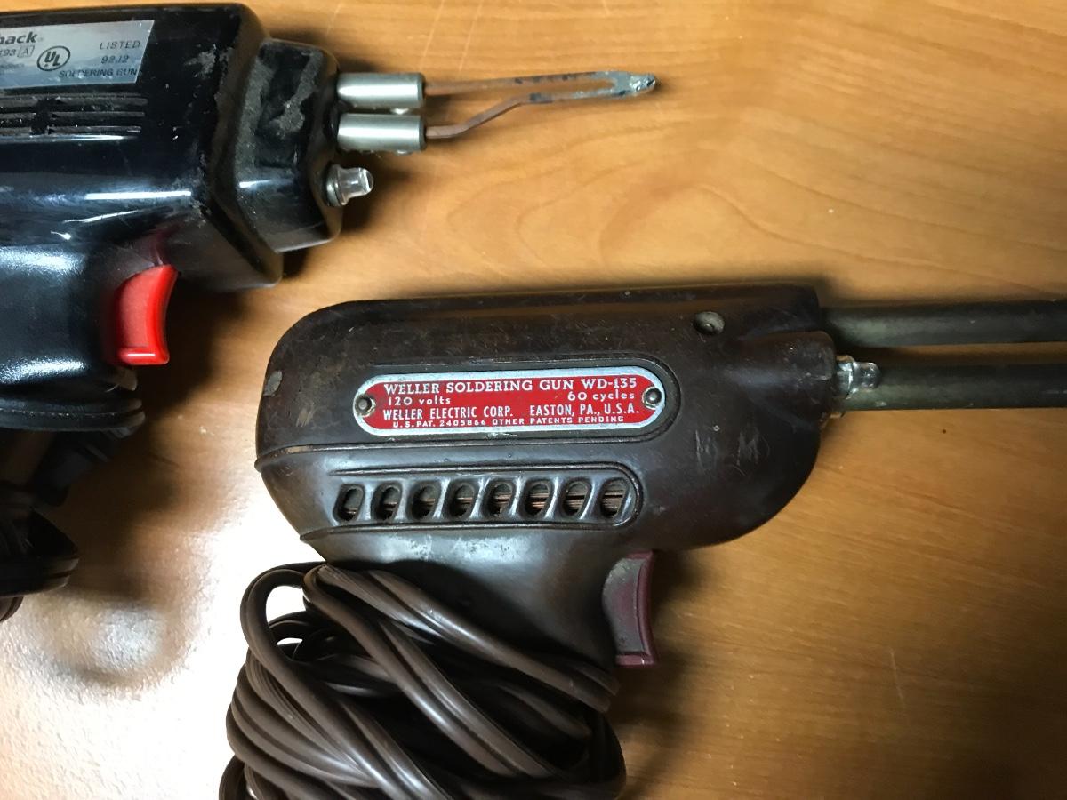 Lot of Vintage Weller & Radioshack Soldering Guns and Supplies, there is no significant damage to the body of the soldering guns, and some supplies have not been used. Check pictures for more details and for sizing, has not been tested.