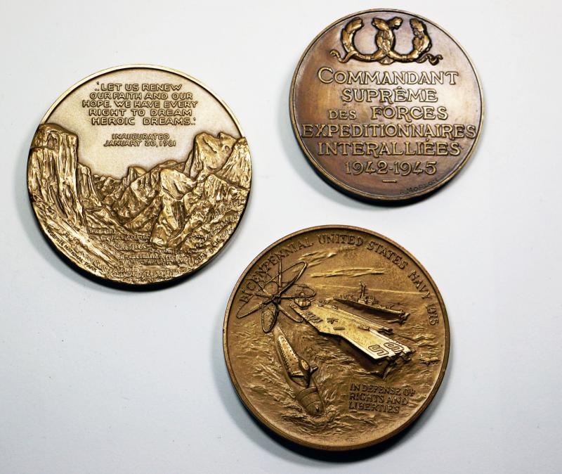3 Solid Bronze Medallions - Eisenhower Reagan & Birth of the US Navy