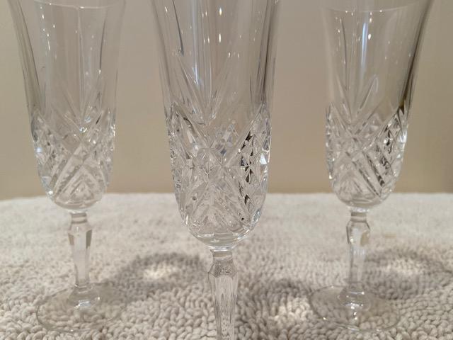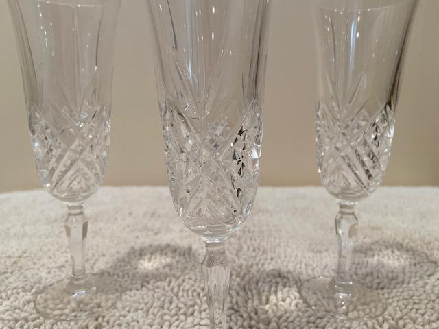 3 Sorbet Dishes and 3 Crystal Champagne Flutes