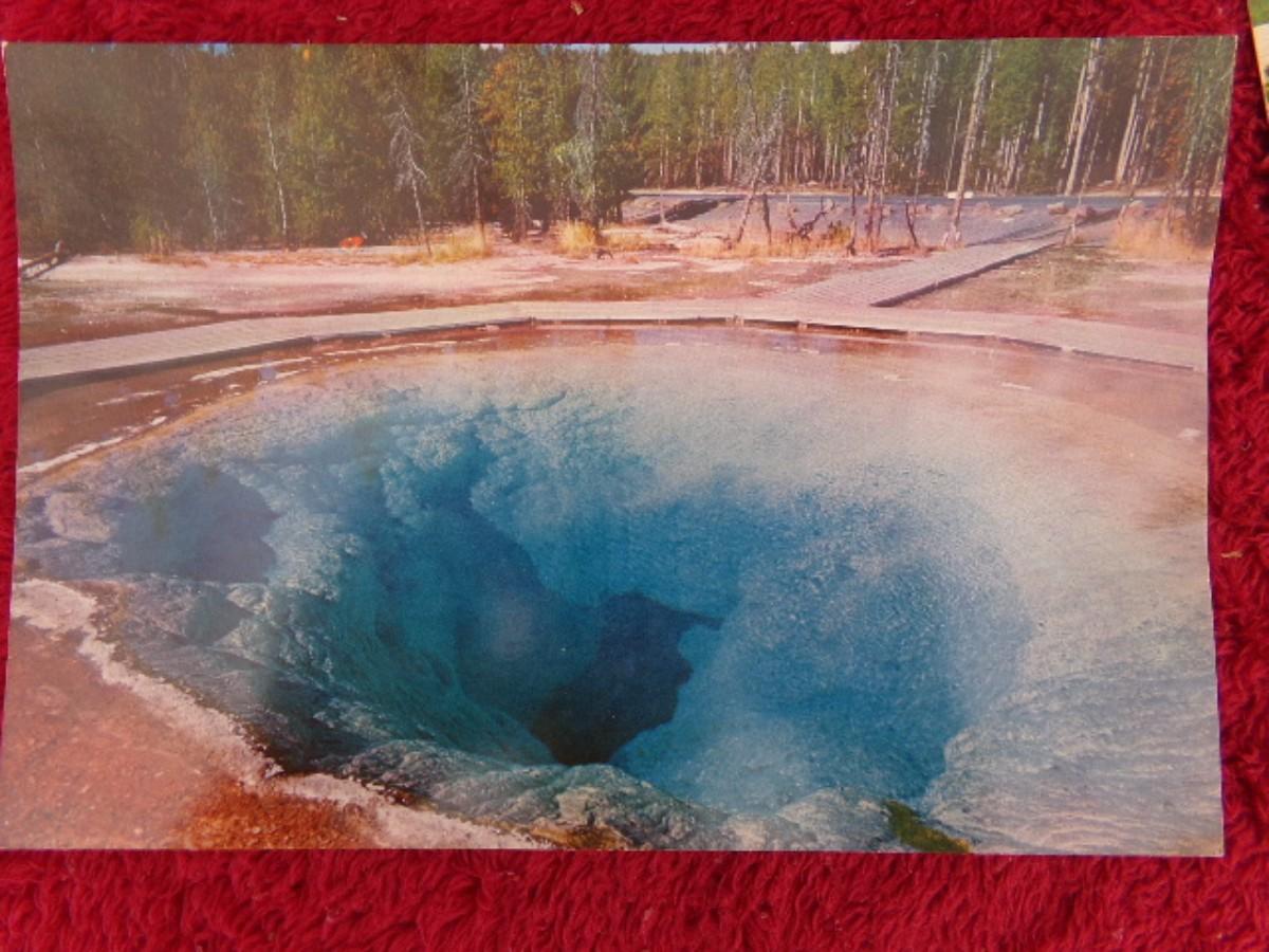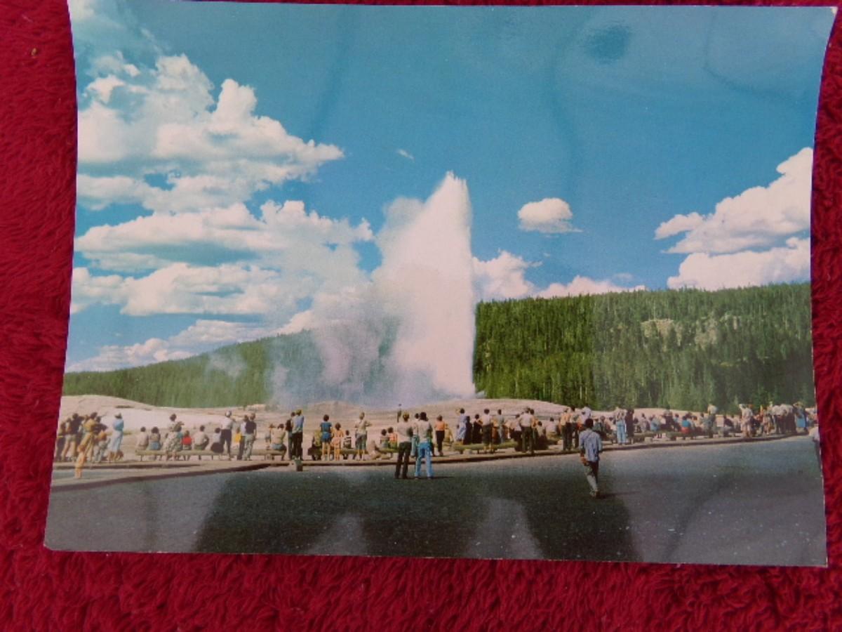 Lot of 3 souvenir “Jumbo Post Card” of Yellowstone National Park. c. Early 1950s. One each of “Old Faithful Geyser”, “Fishing Bridge” and “Morning Glory Pool”, Two are about 6-1/2"x9", one is about 6"x9". Printed by: Haynes Studios Inc., Bozeman Montana. UNUSED. VG to EX condition. NOTE: These would have to ship in an oversized box to prevent damage.