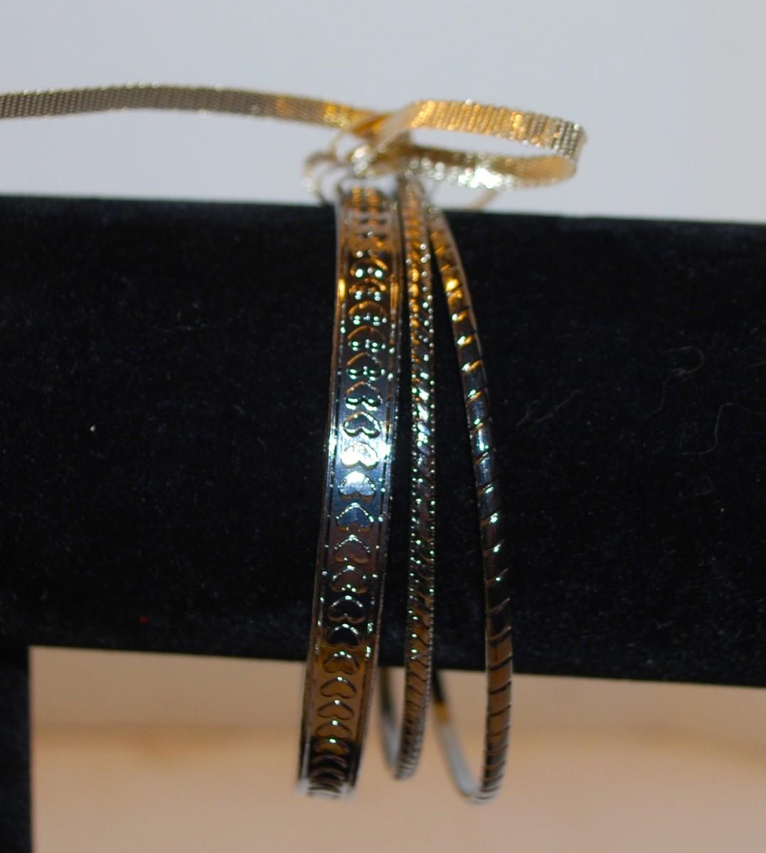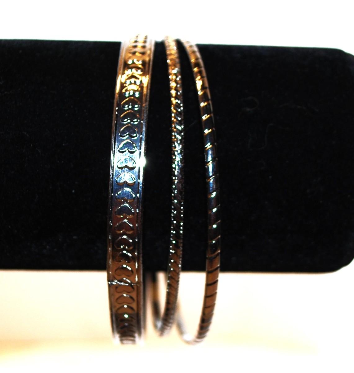 3 Sparkly Silver Tone & Black Bracelets 3" Diameter