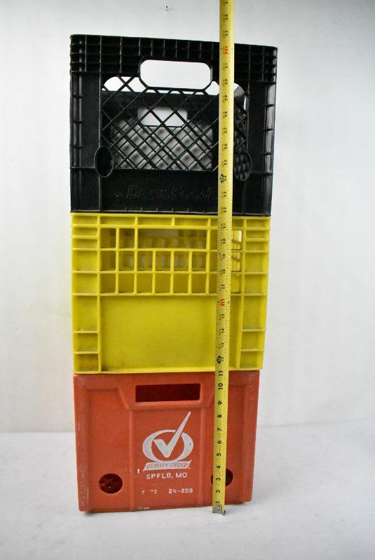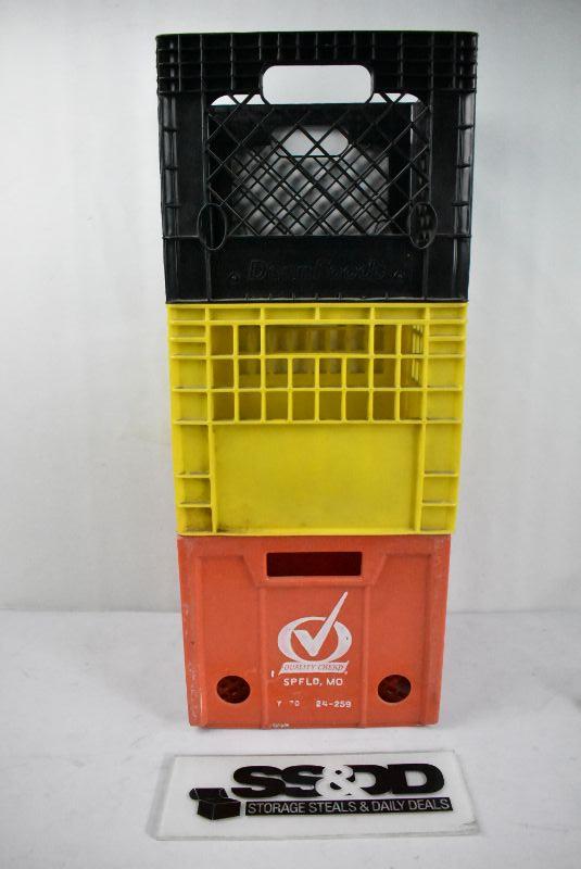 3 Stackable Milk Crates: Black, Yellow, and Orange