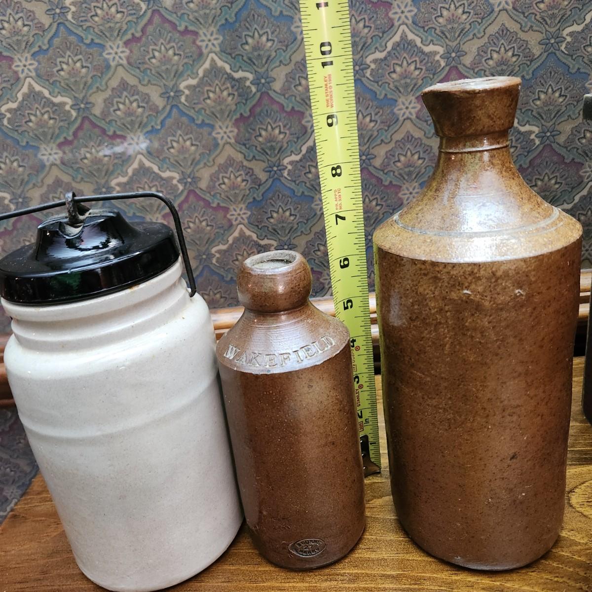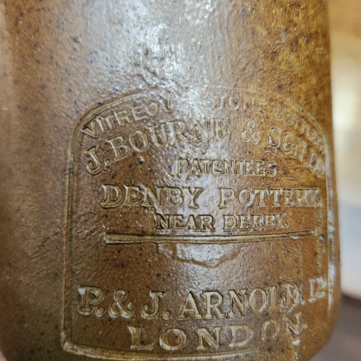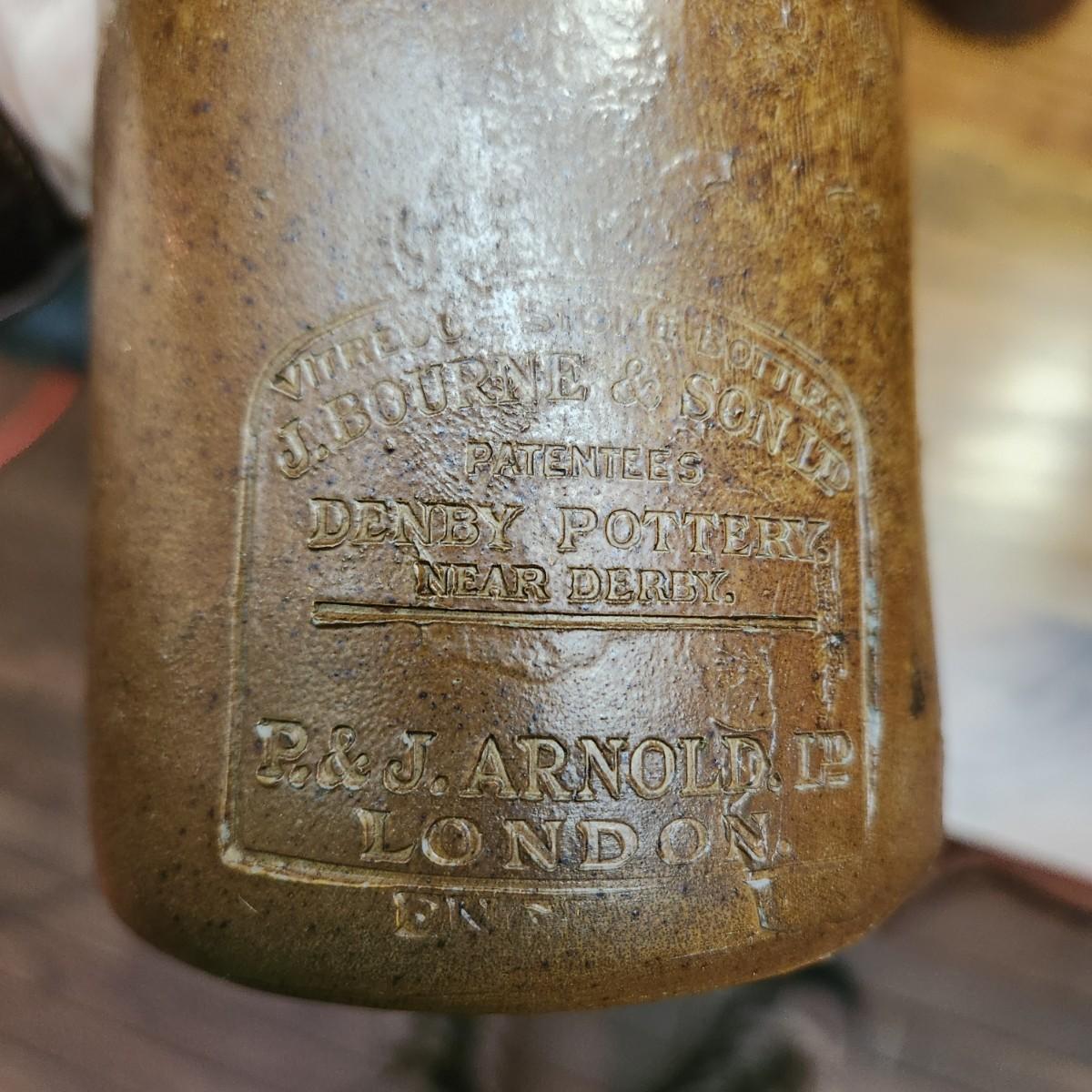 3 Stoneware Crocks Bottles E.P. Shaw Wakefield J. Bourne & Sons Denby Pottery Derby P.& J. Arnold London