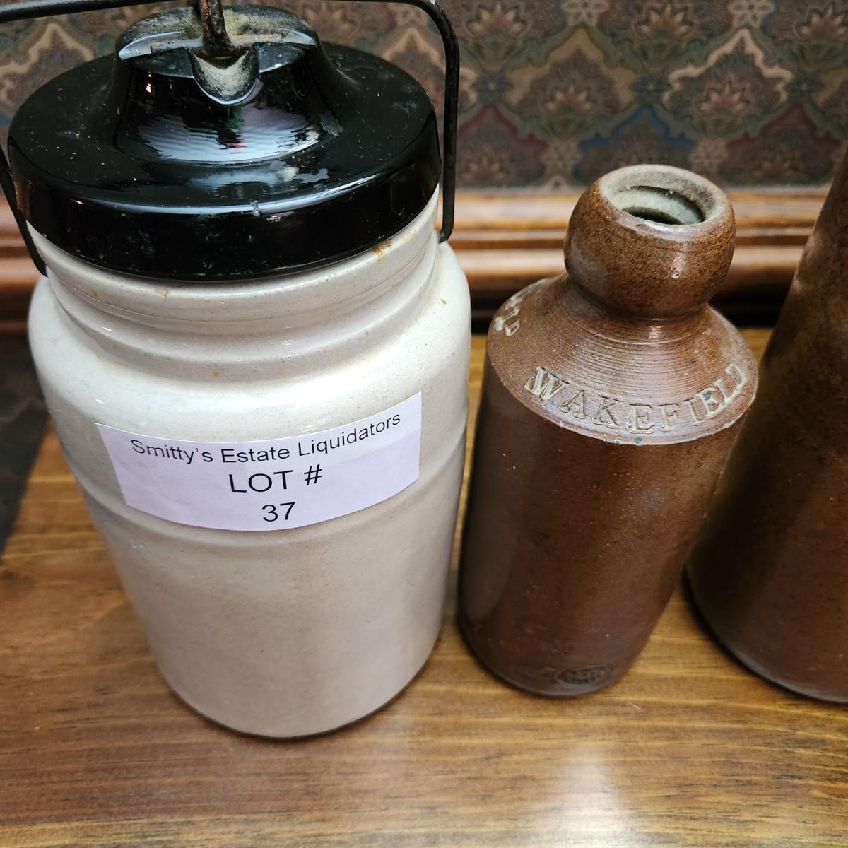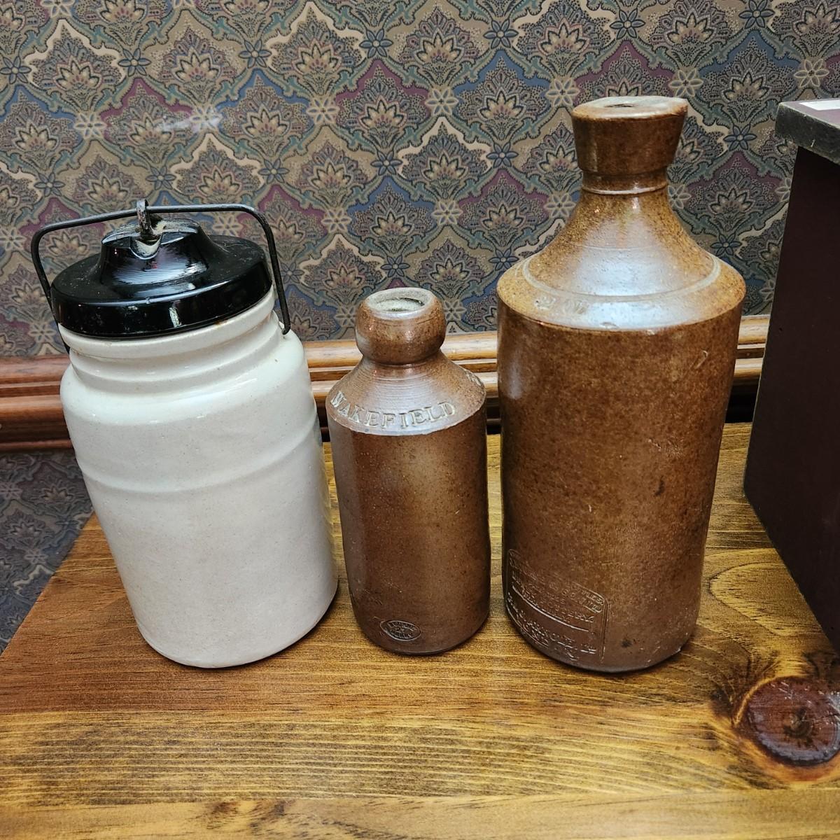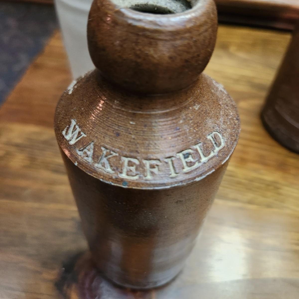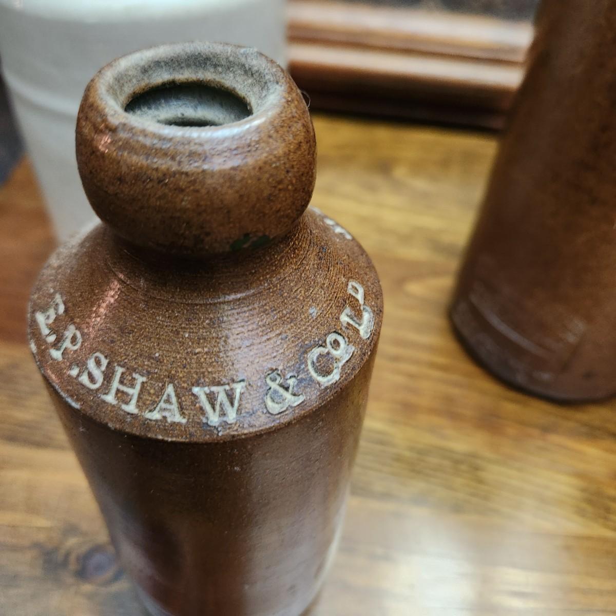 3 Stoneware Crocks Bottles E.P. Shaw Wakefield J. Bourne & Sons Denby Pottery Derby P.& J. Arnold London