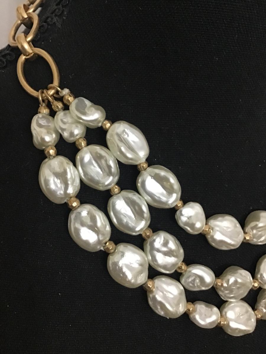 3 Strand Faux Baroque Pearl Gold Bead Spacer Gold Chunky Chain