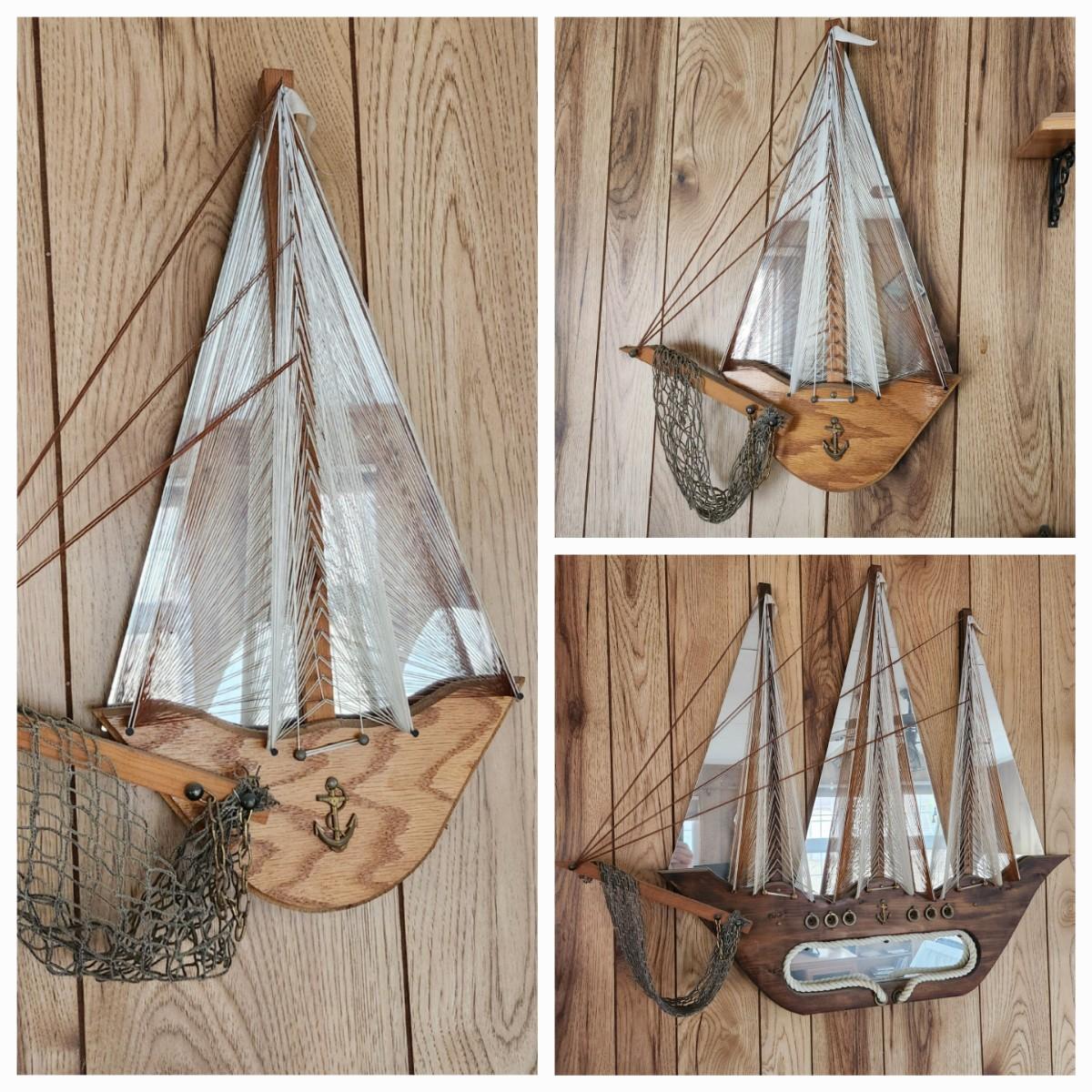 3 String Wood Mirror Art Sailboat Ships Boats Nautical Theme Wall Art 2 Medium size 1 Large