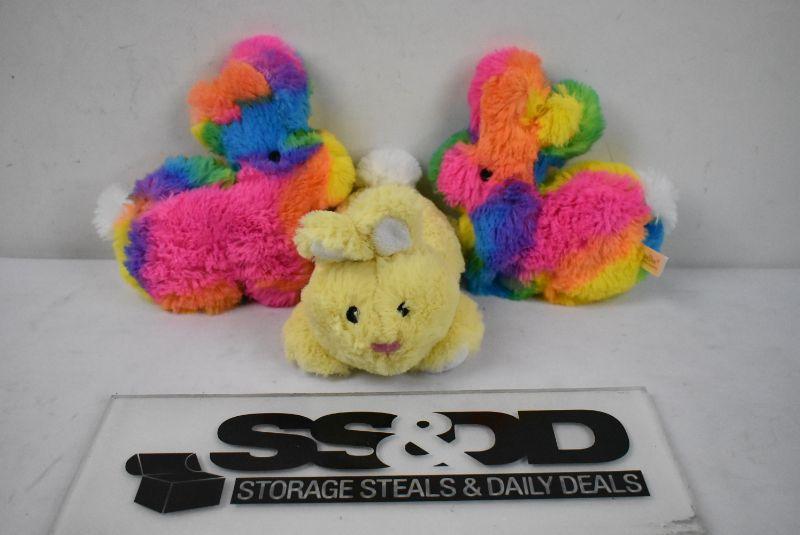 3 Stuffed Animal Bunny Toys: 1 Yellow and 2 Colorful