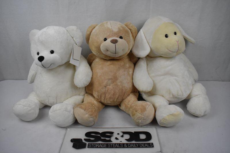 3 Stuffed Animals, Super Soft: Polar Bear, Brown Bear, White Sheep - New