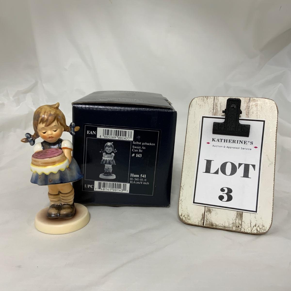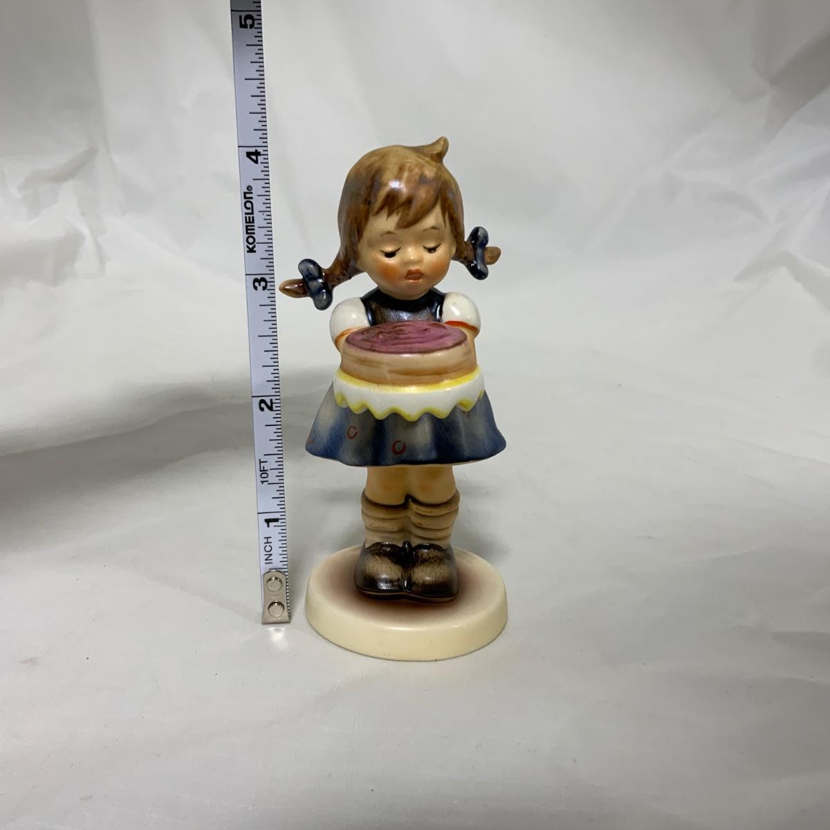Who doesn’t love cake?! This girl is a sweet as can be! Hum 541, #143. Measures 4 inches tall. Comes with original box. Please see photos for details and condition. - No Cracks, Chips or Crazing Noted. ::: Shipping is available on this lot. If you require shipping you must let us know at the close of the auction. We will coordinate with you after the item has been won. Shipping fees will include insurance up to or exceeding the value of all items being mailed. If you have any questions regarding this lot please contact the auctioneer either via this website, by direct email or by phone. PICK UP TIMES and other important information can be found in the TERMS and DESCRIPTION of the auction. Please take a look for pertinent information. Thanks!