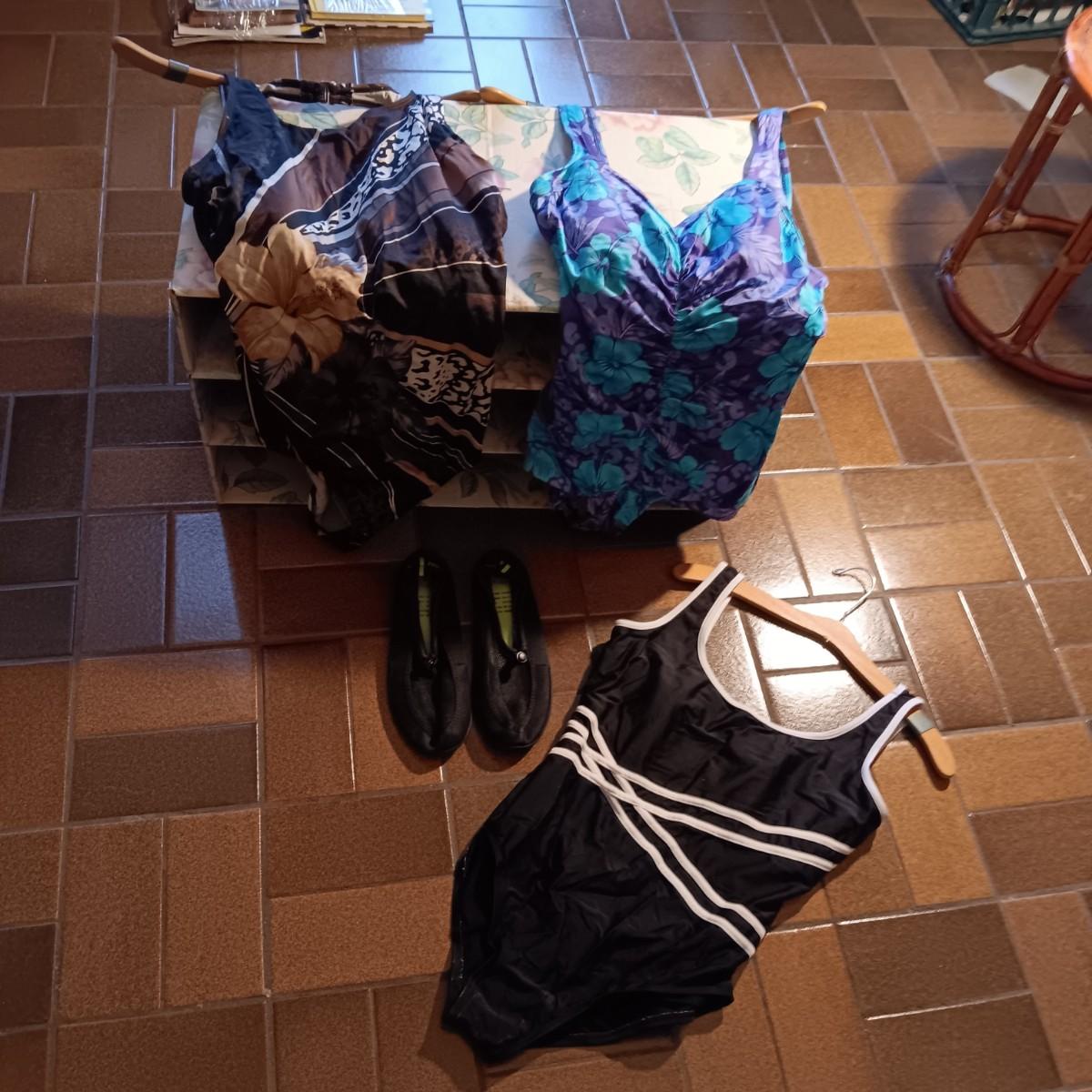 3 SWIMSUITS SIZE 18 AND A PAIR OF WATER SHOES SIZE 8