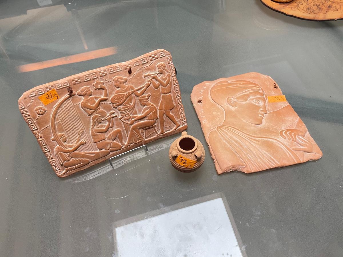 3 Terracotta Items - 2 plaques & 1 small jar