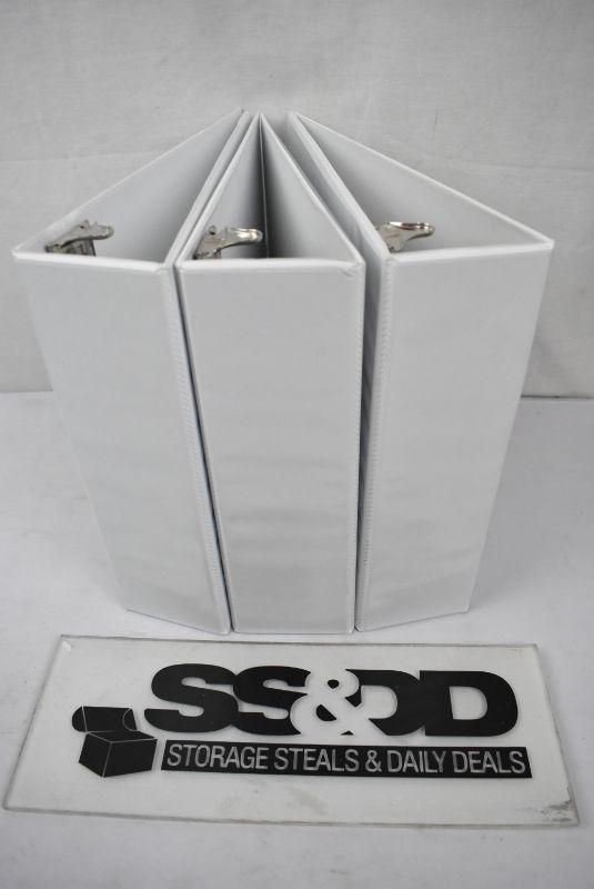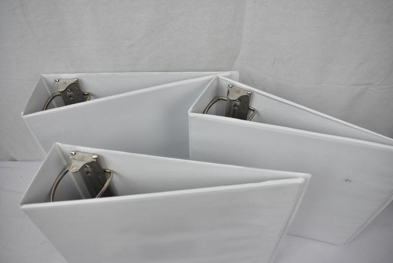 3 Three-Ring Binders, White, D-Rings, 3" - New