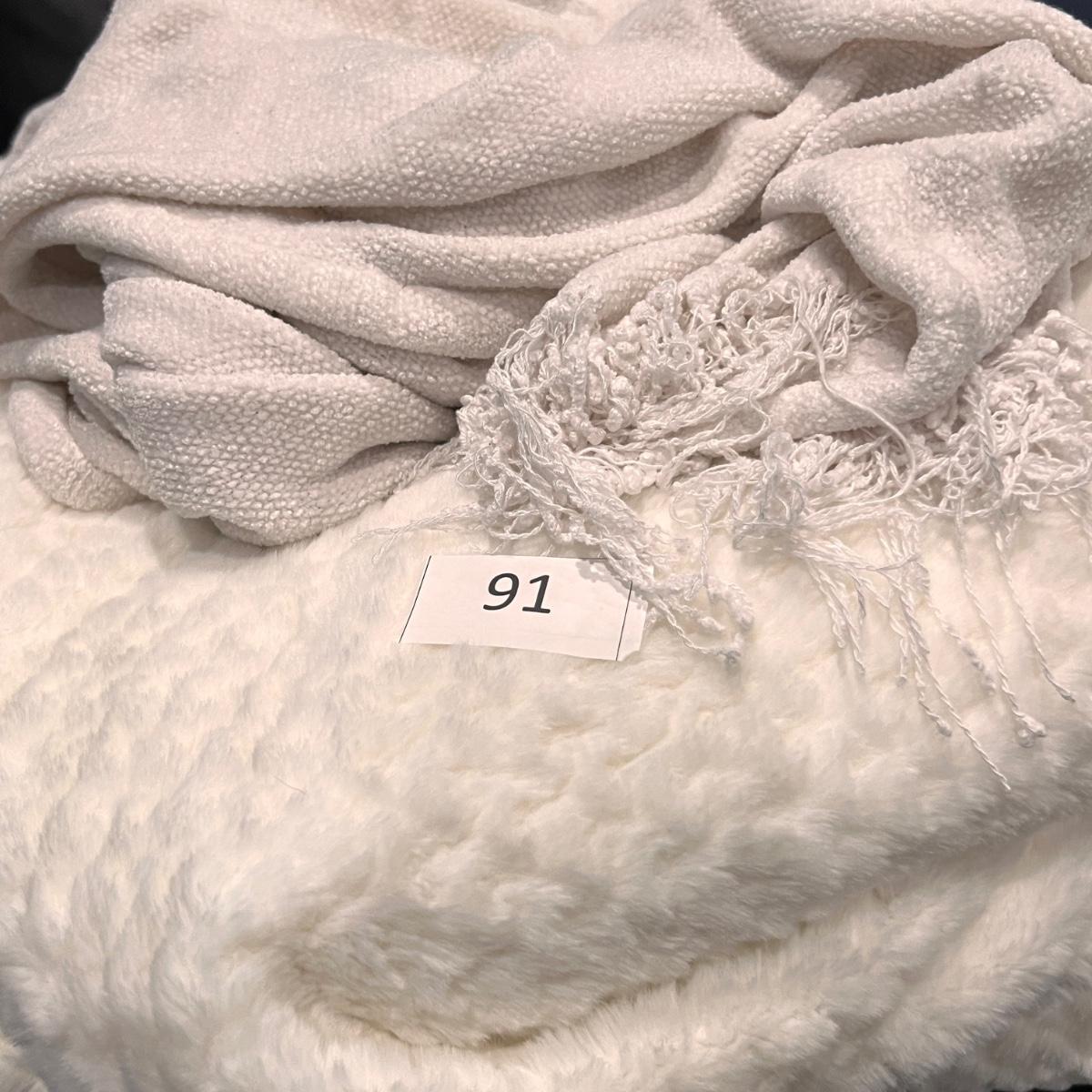 2 Joann super soft throw blankets in great condition. 1 throw with fringe has some pulls.