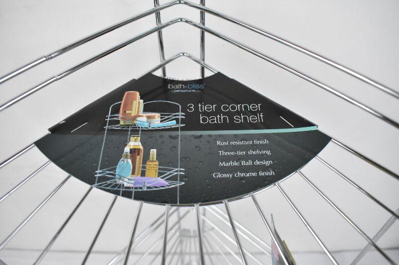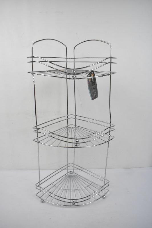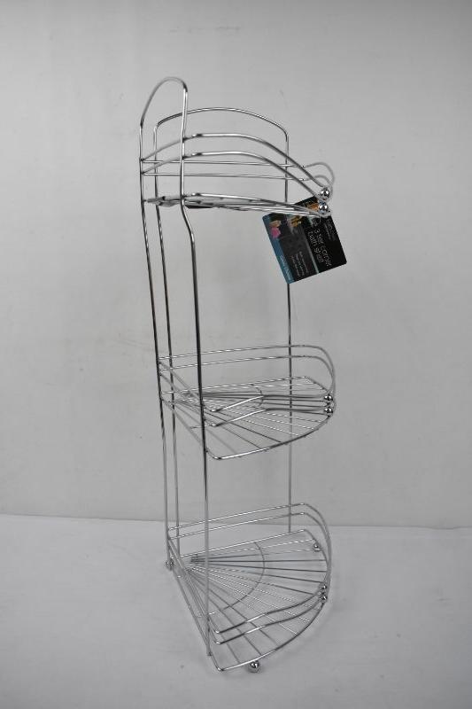 3 Tier Corner Bath Shelf, Chrome Finish, Top Shelf is Slightly Bent