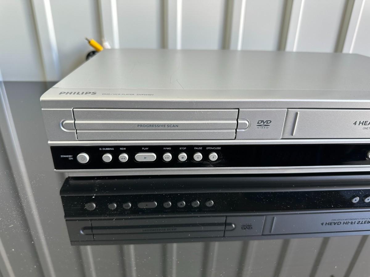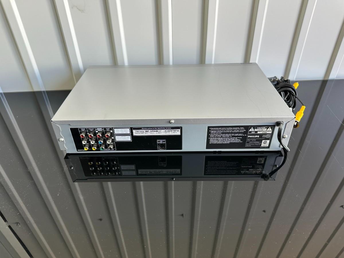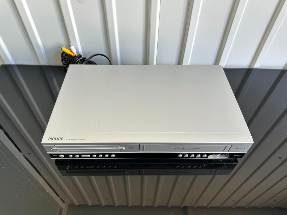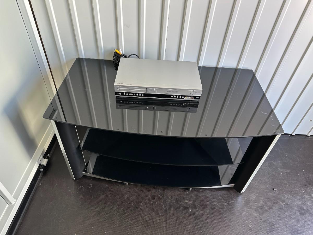3 TIER MEDIA STAND AND PHILLIPS VHS/DVD COMBO PLAYER