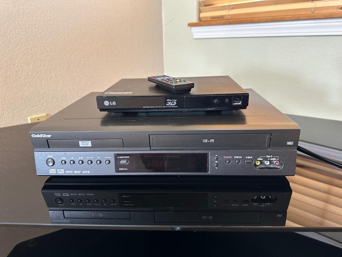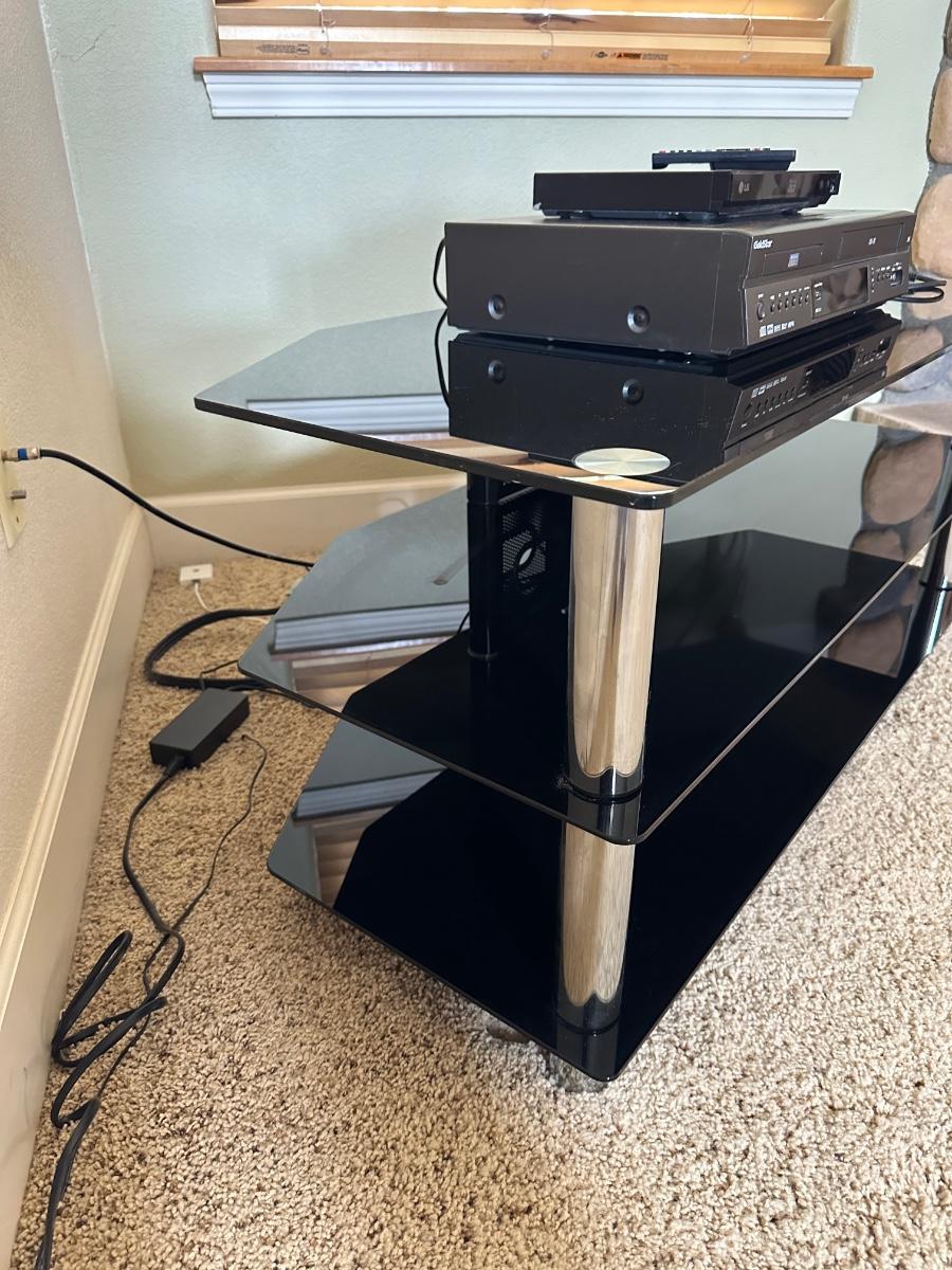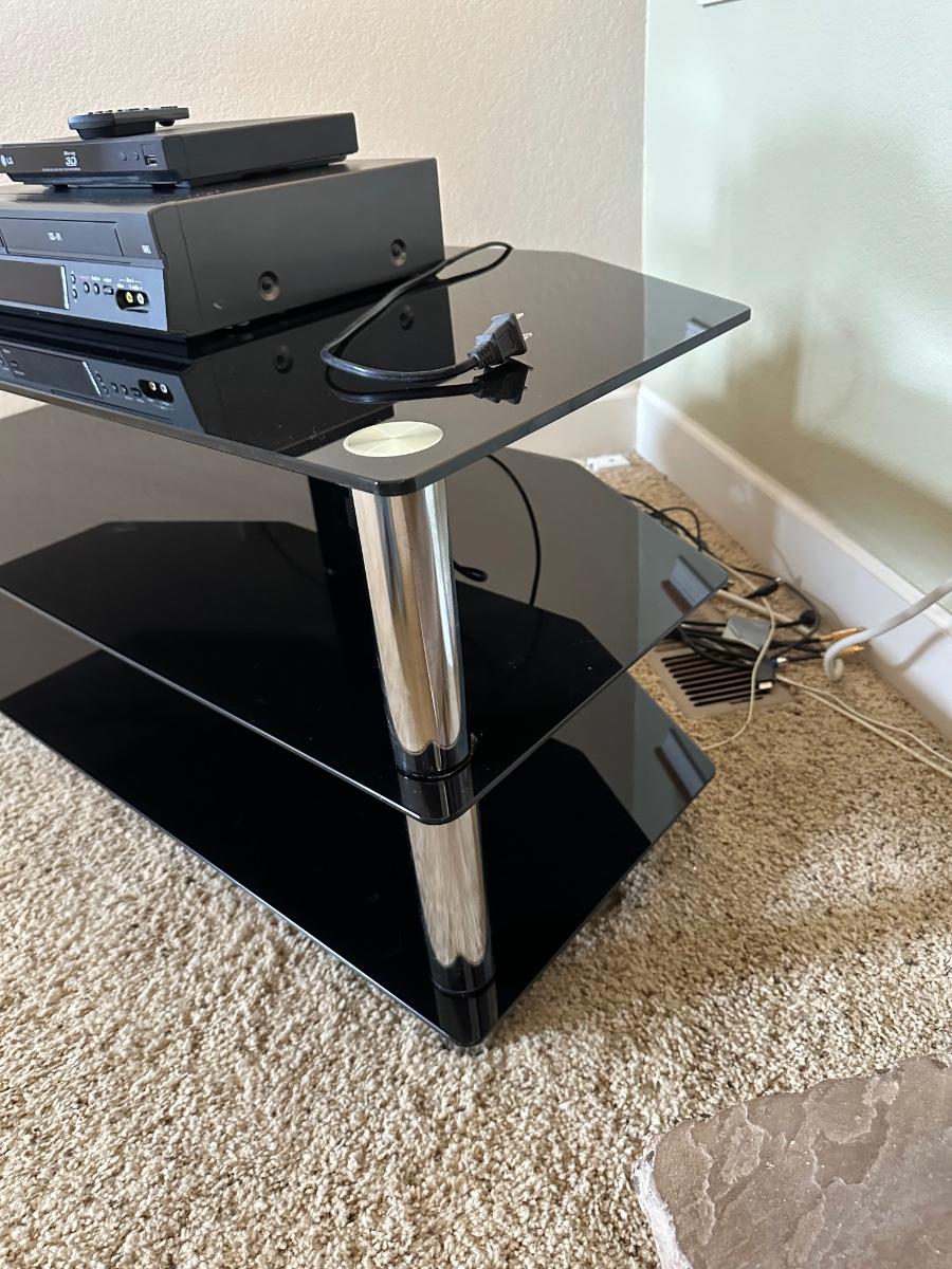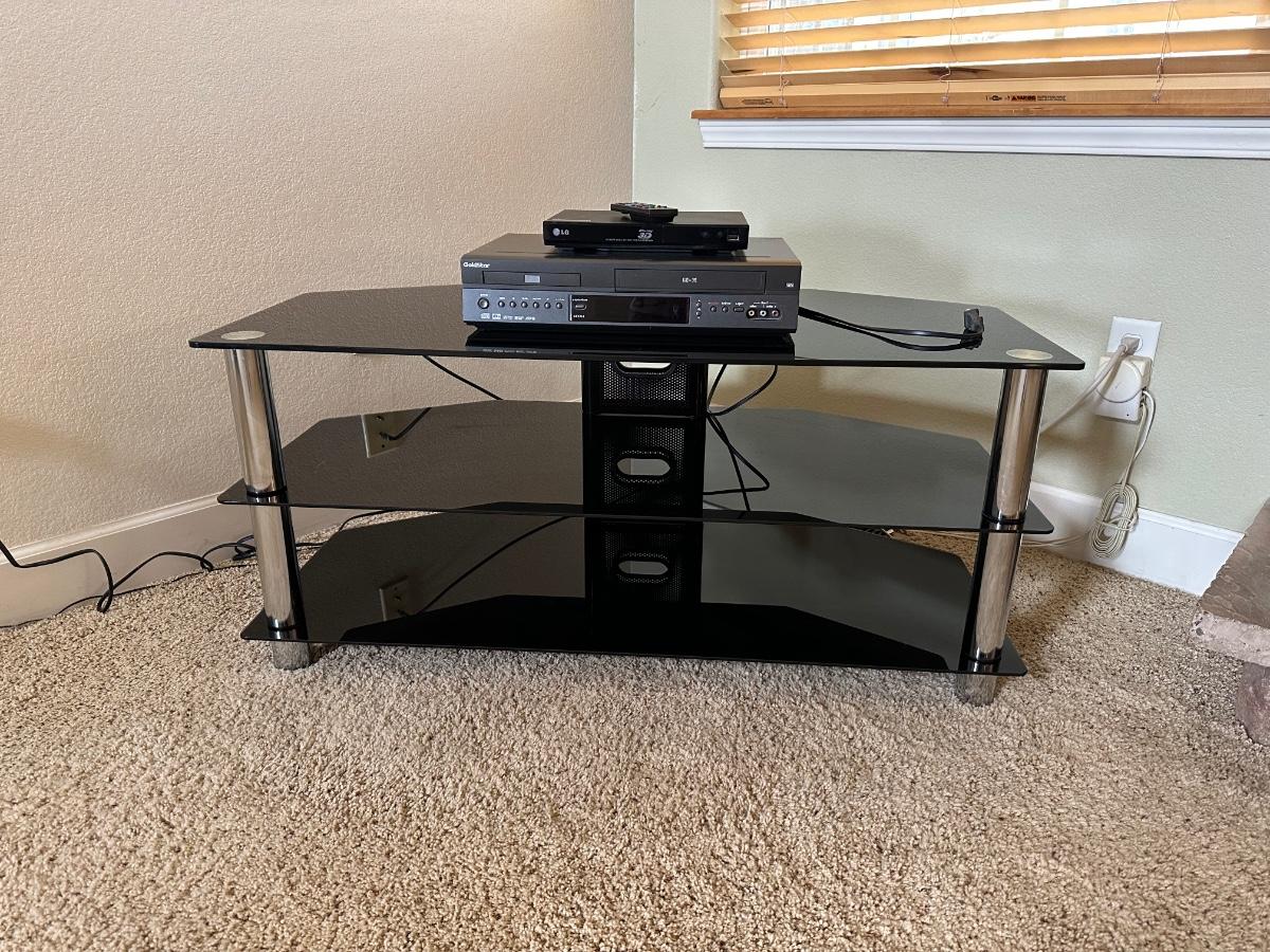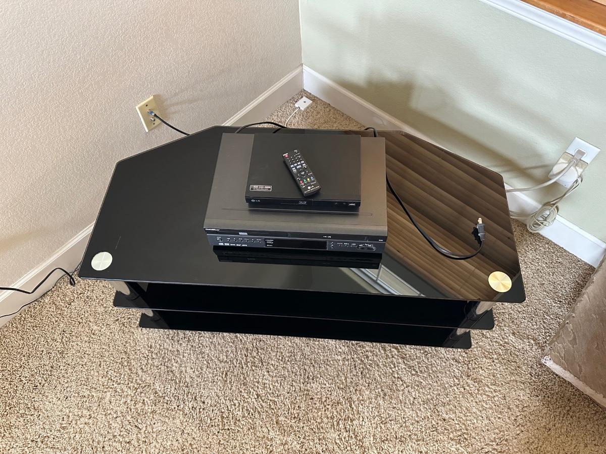 3 TIER MEDIA STAND WITH LG 3D BLU-RAY DISC PLAYER AND DVD/VHS COMBO PLAYER
