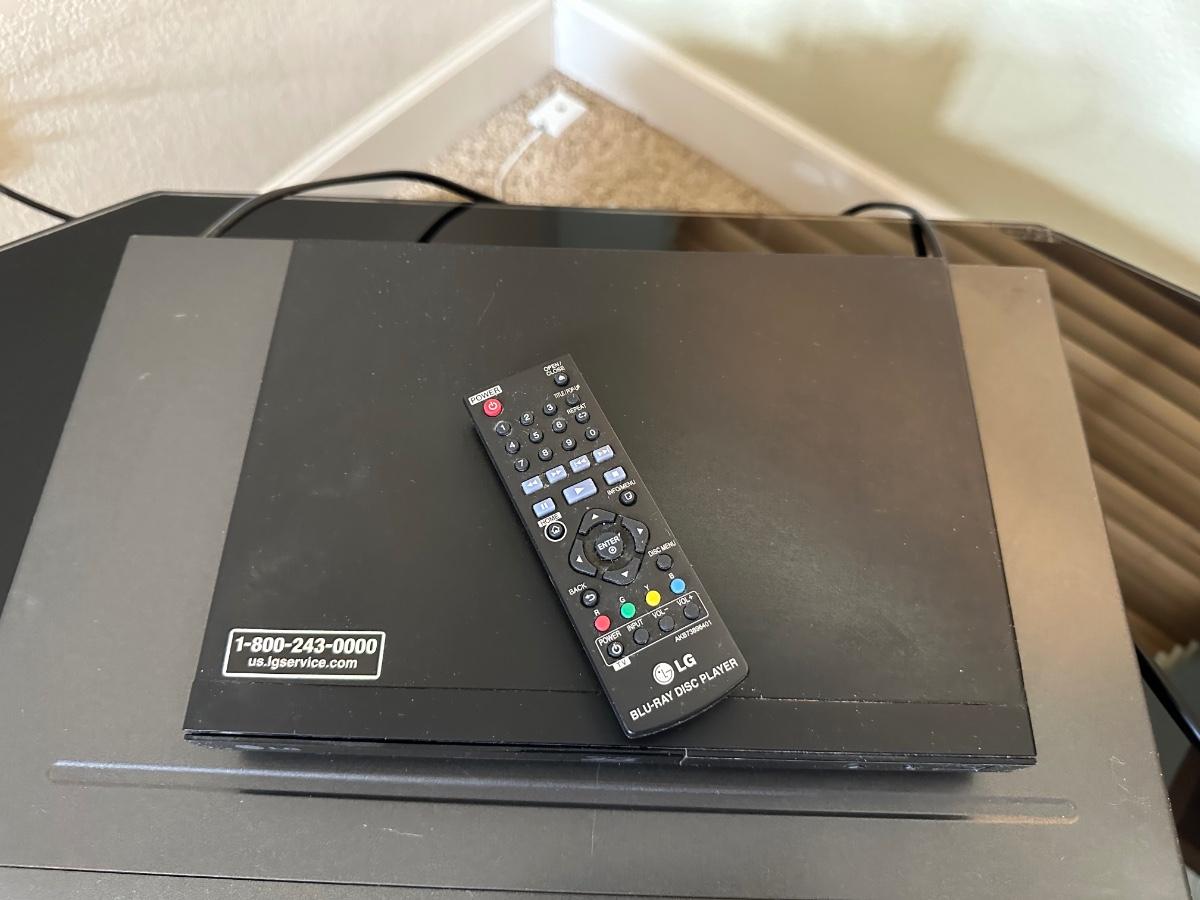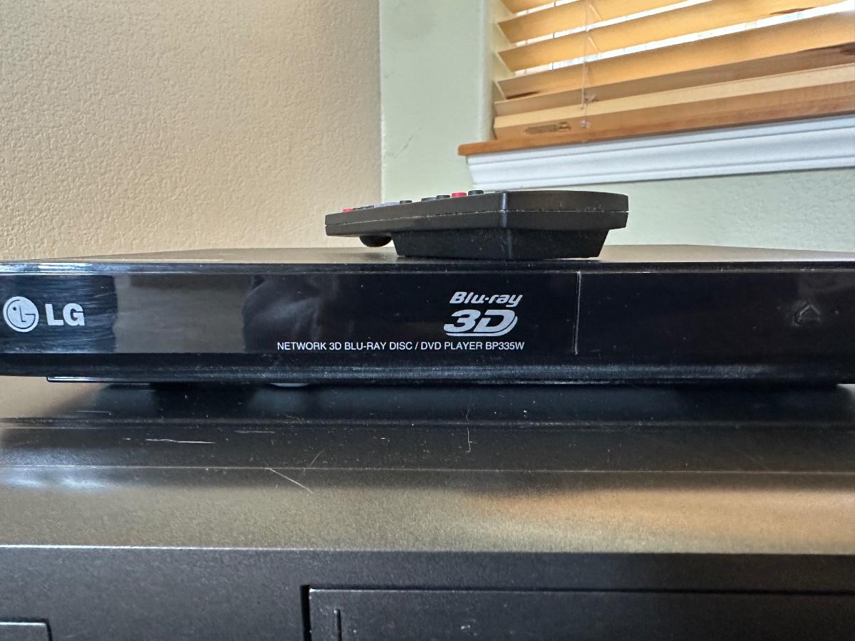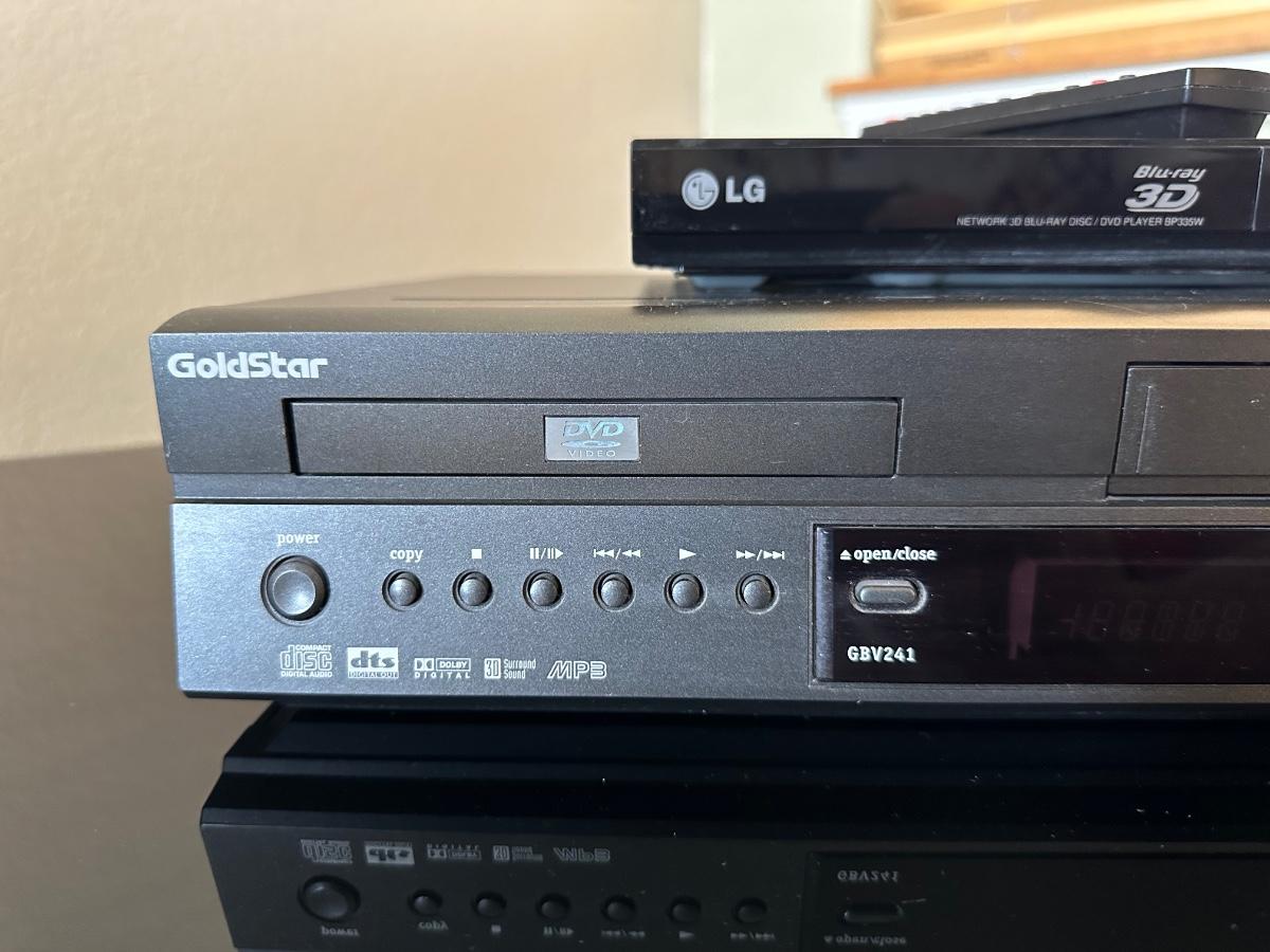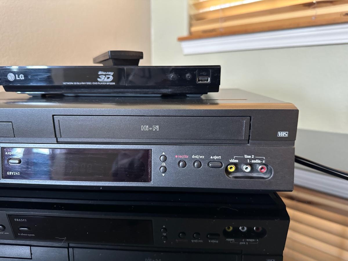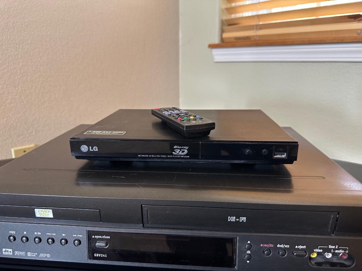 3 TIER MEDIA STAND WITH LG 3D BLU-RAY DISC PLAYER AND DVD/VHS COMBO PLAYER