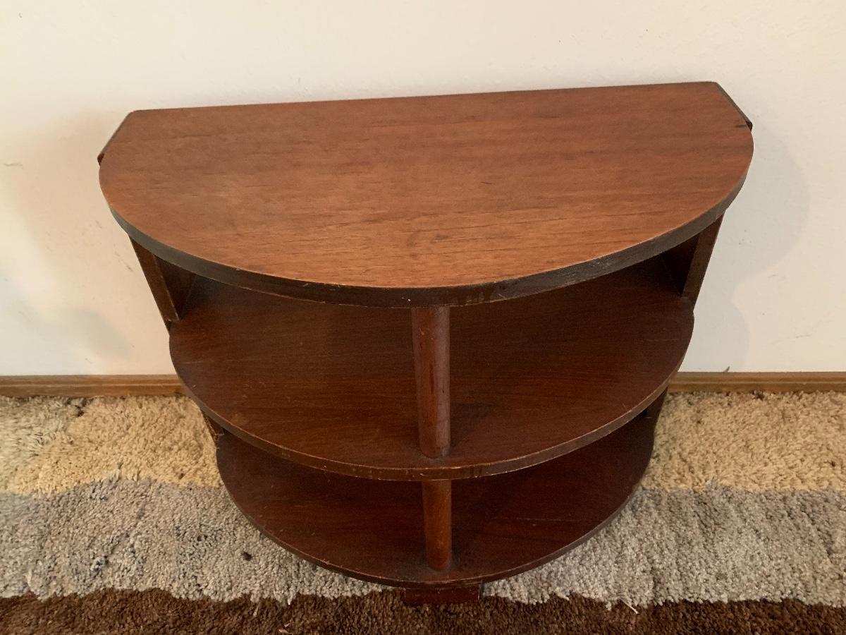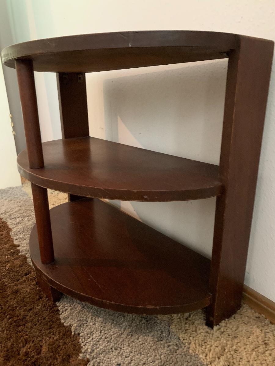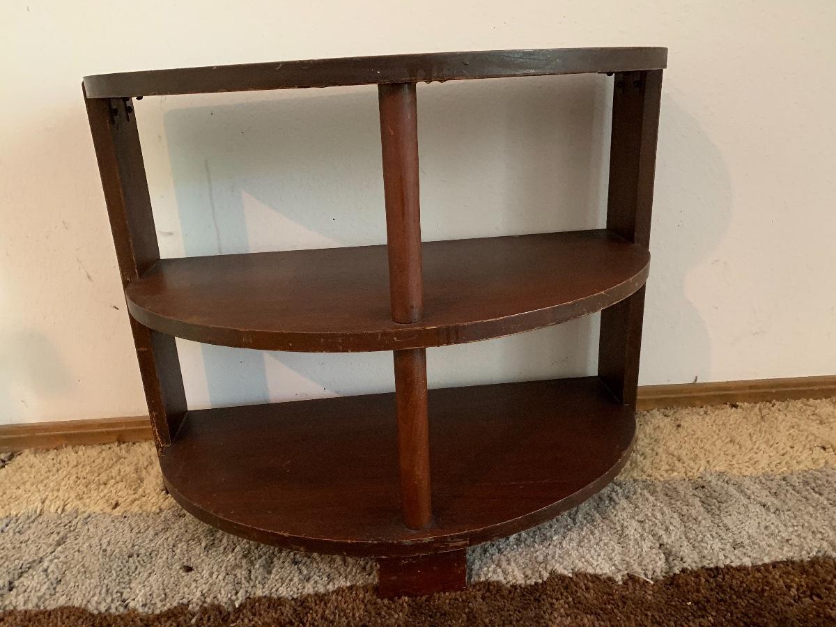 Weather you set this atop another table or keep it at floor level, its a very nice place to display plants, magazines or knick-knacks. Solid, high quality wood. Approximately 2-2 1/2' wide x 1' deep x 2 1/2' tall.