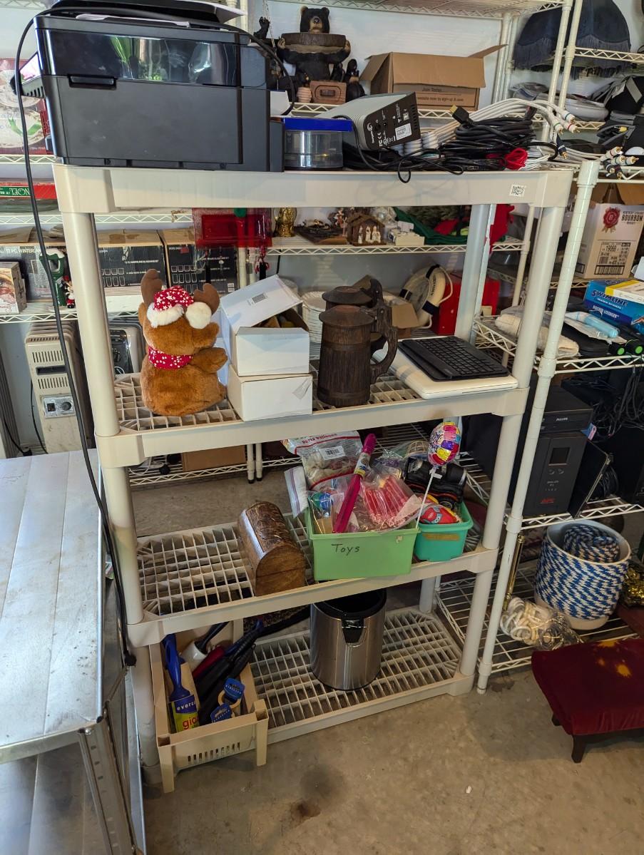 3 Tier Plastic Shelving Unit - Measures Approx 34" Wide, 12" Deep, 52" Tall (No Contents)
