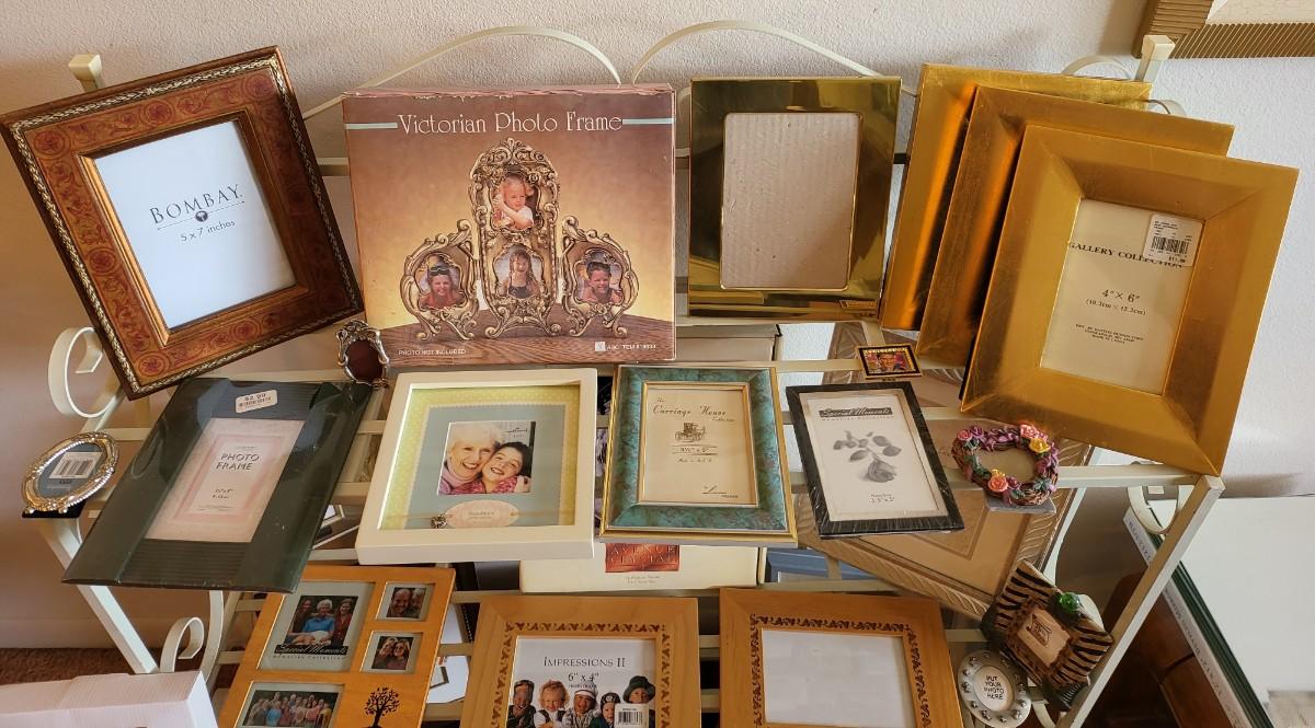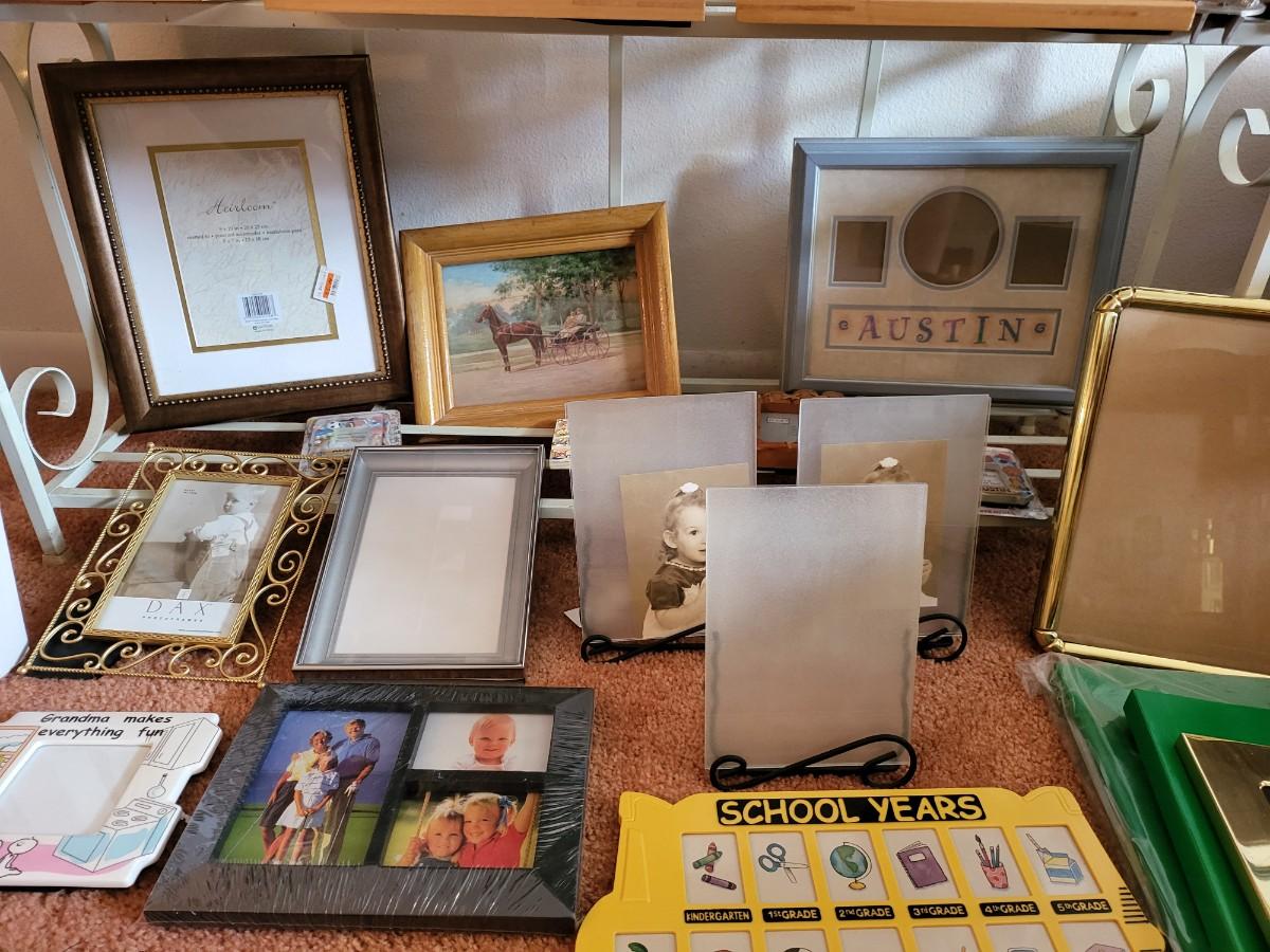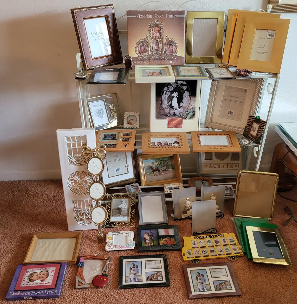 3 Tier Shelf Rack with Picture Frames Lot