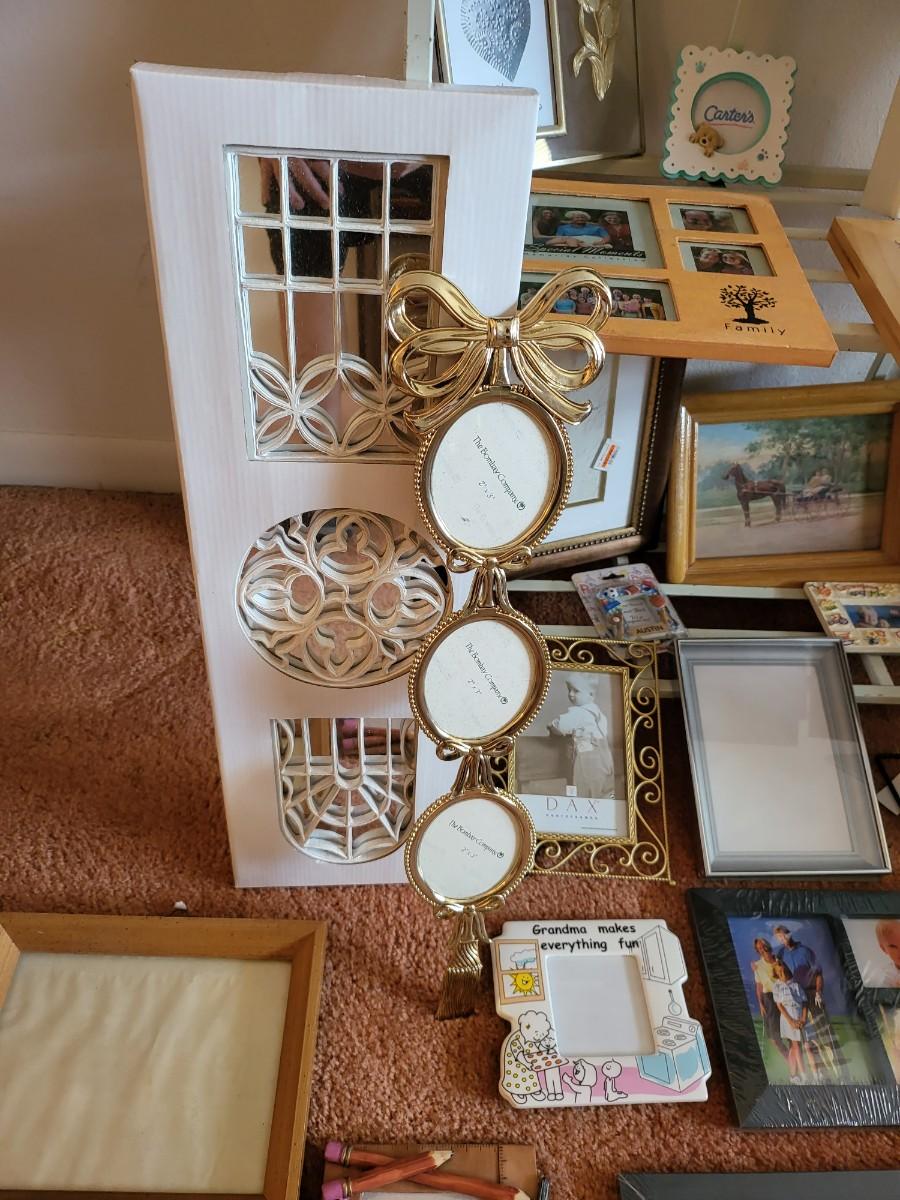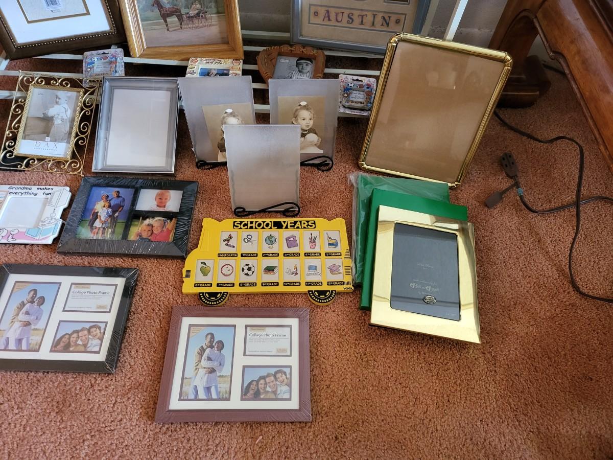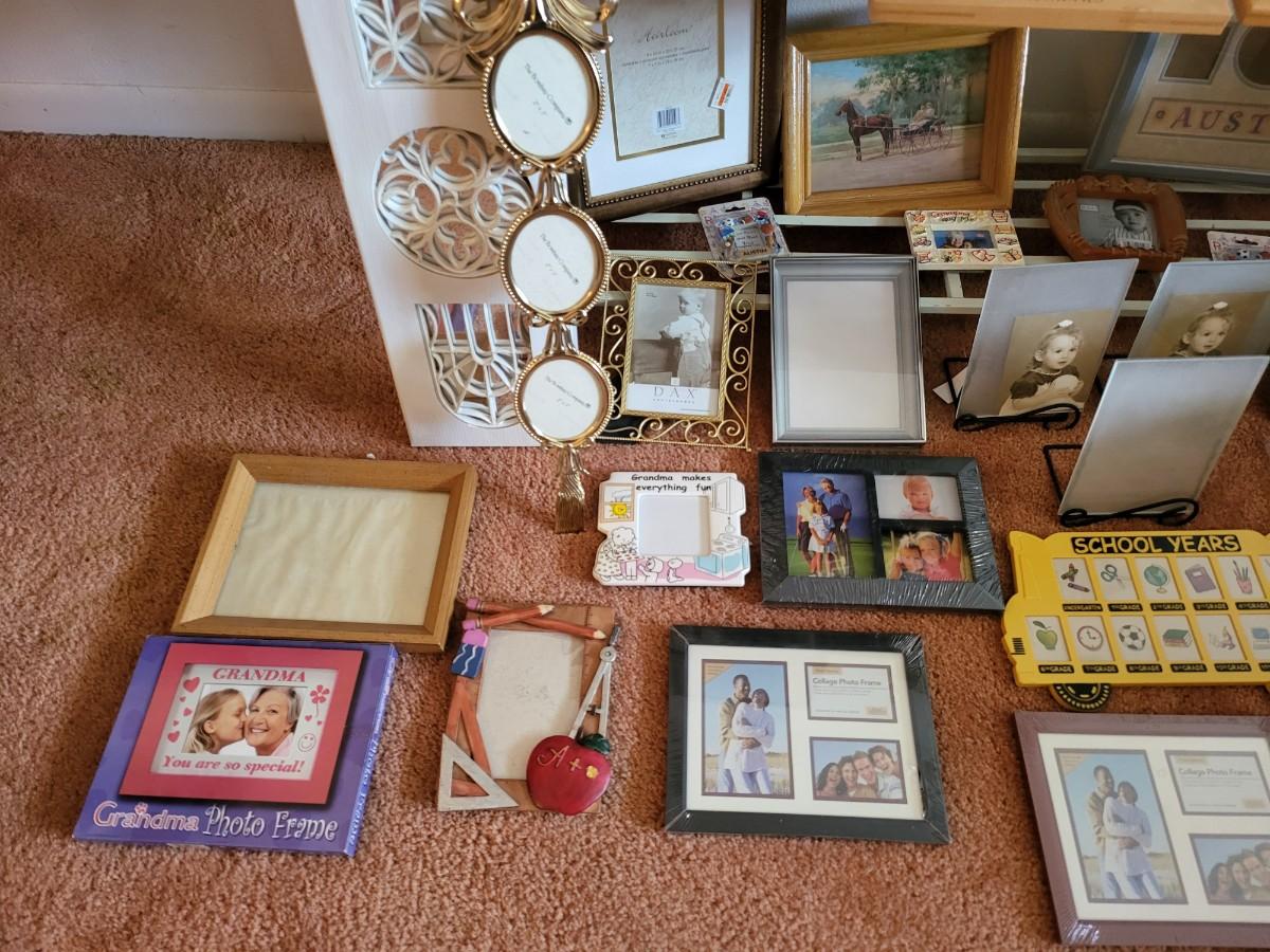 3 Tier Shelf Rack with Picture Frames Lot