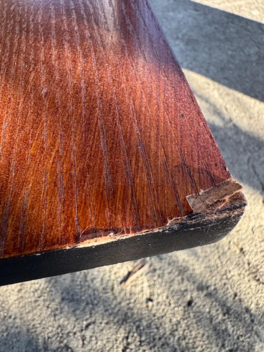Bottom shelf has chip