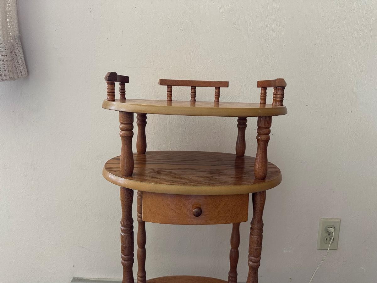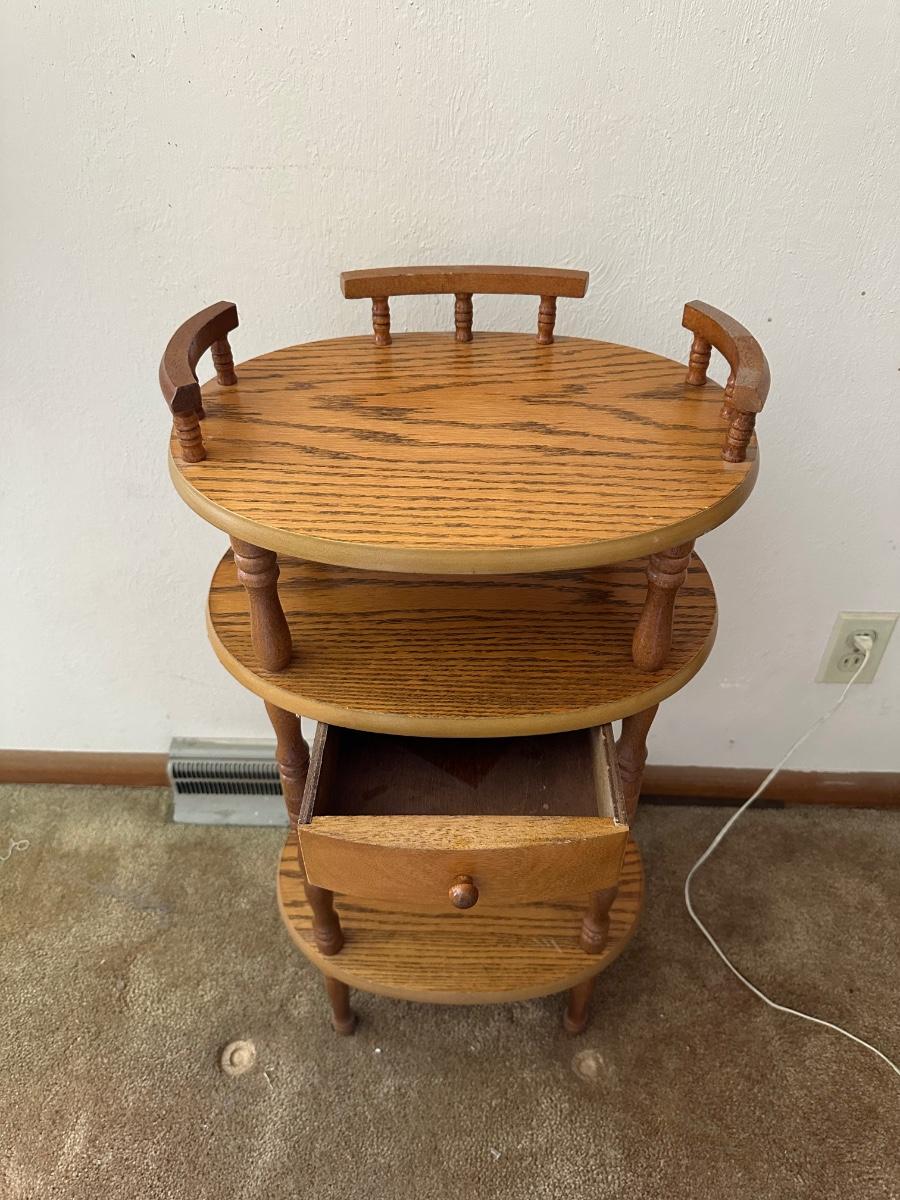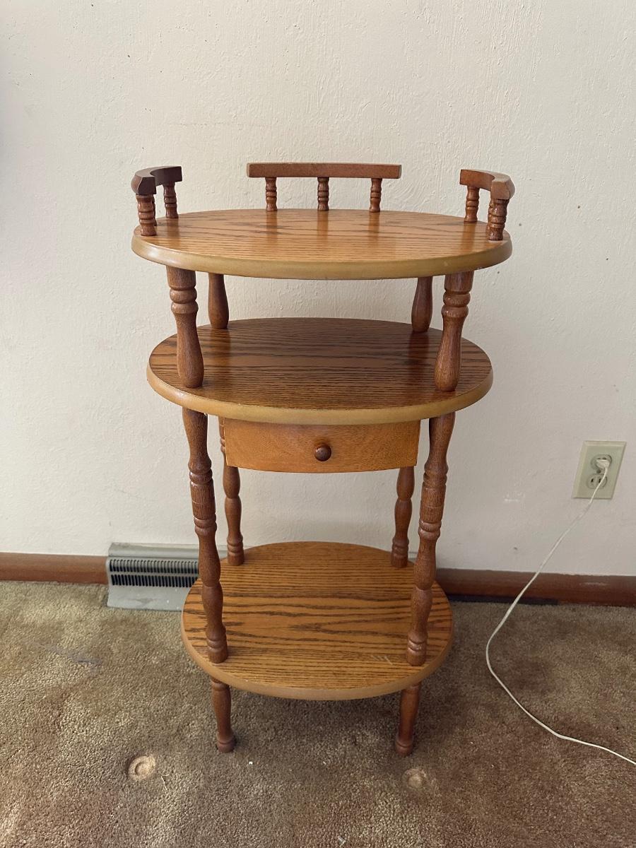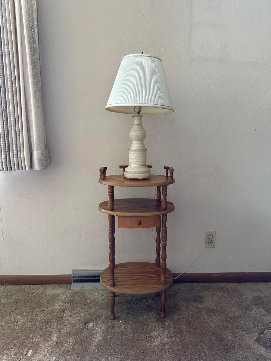 3 TIER STAND WITH DRAWER AND A REVERSE HOBNAIL GLASS LAMP