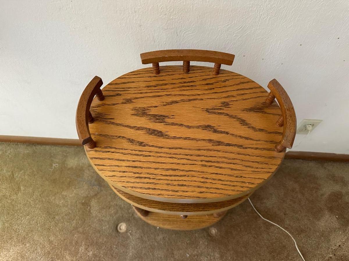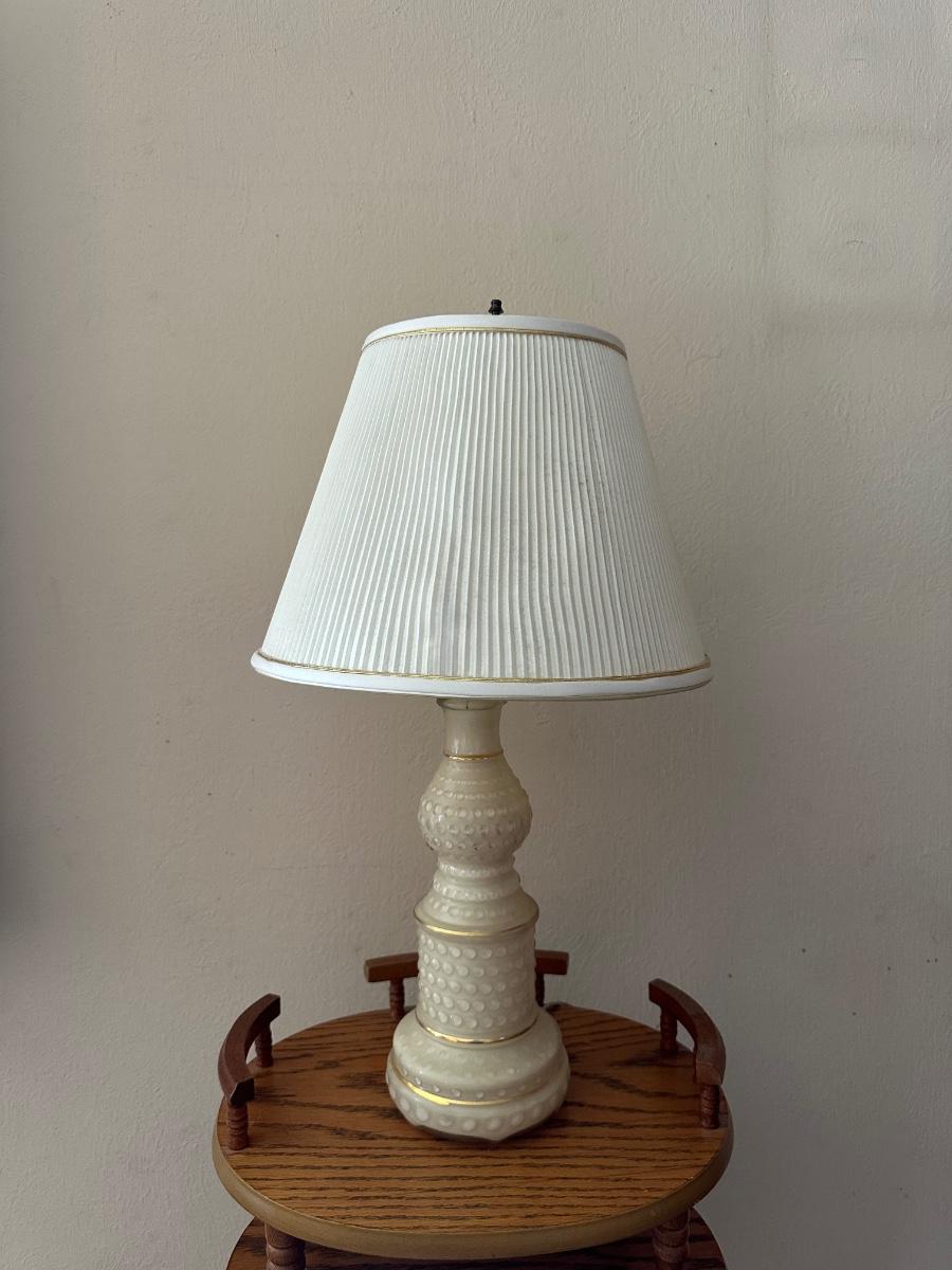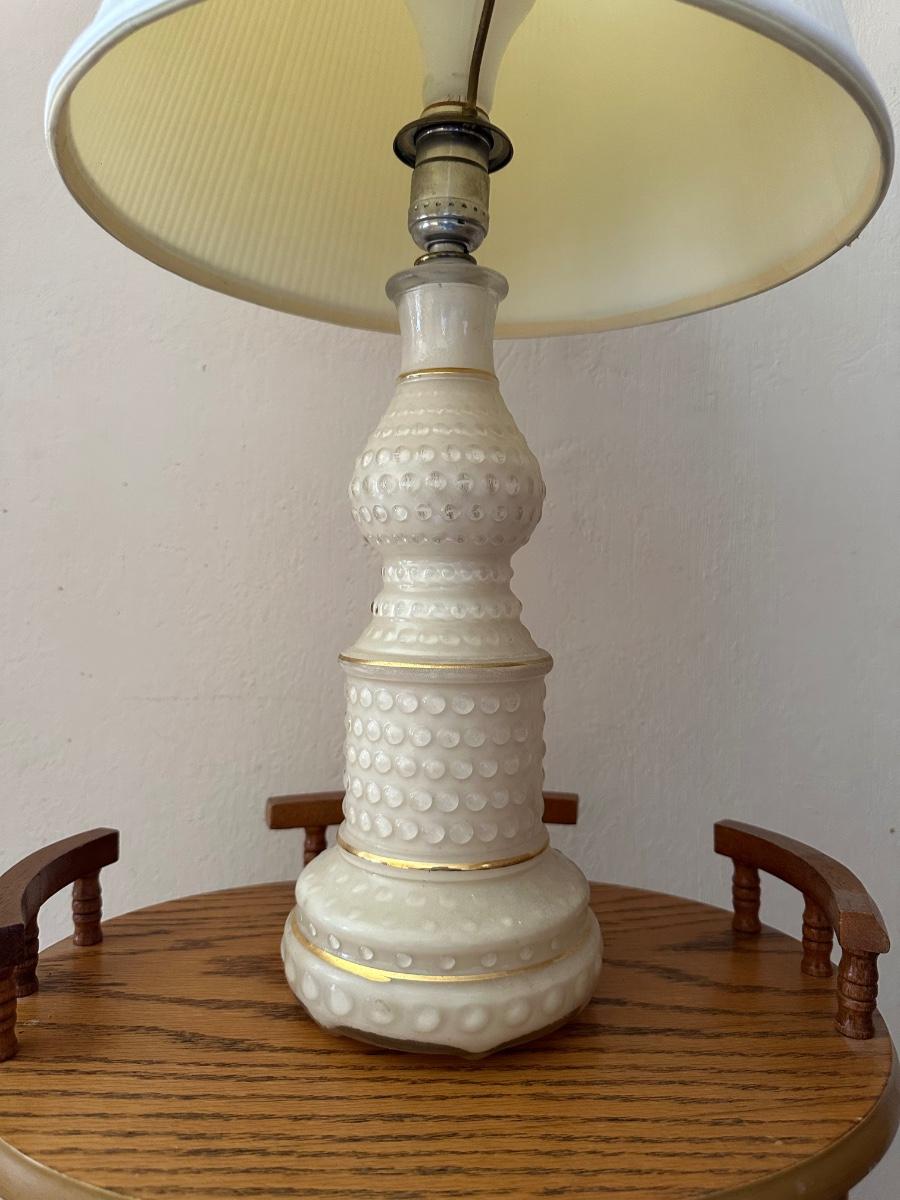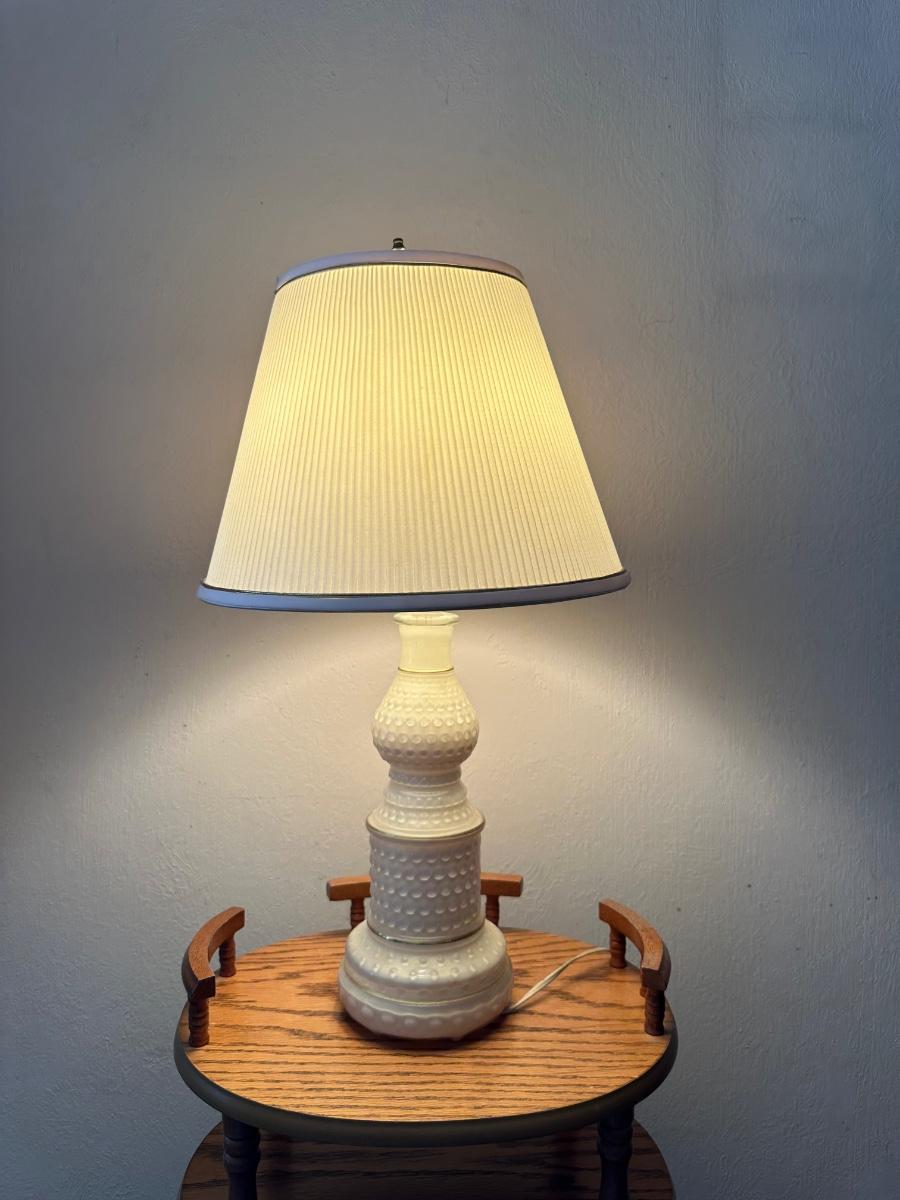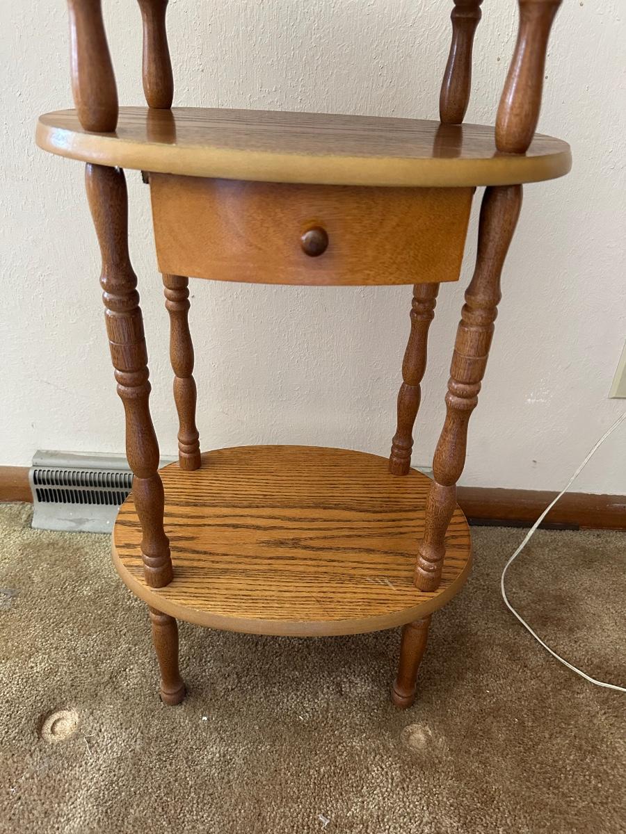 3 TIER STAND WITH DRAWER AND A REVERSE HOBNAIL GLASS LAMP