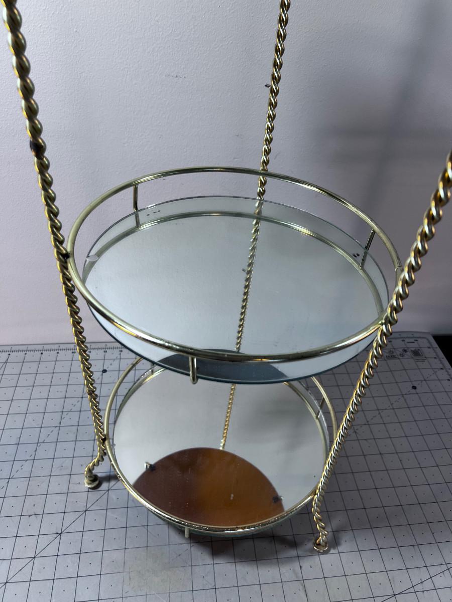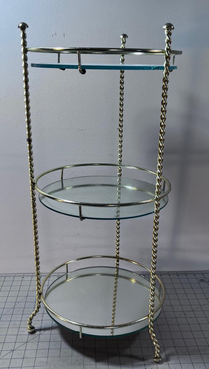 3 Tiered Gold twisted Metal with Mirrored Shelf