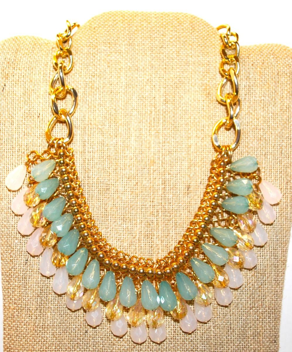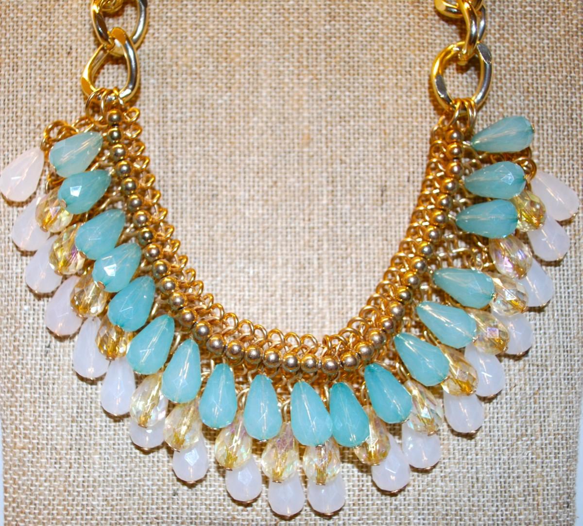3 Tiers of Acrylic Teardrops On a Heavy Gold Tone Chain Link 11" L