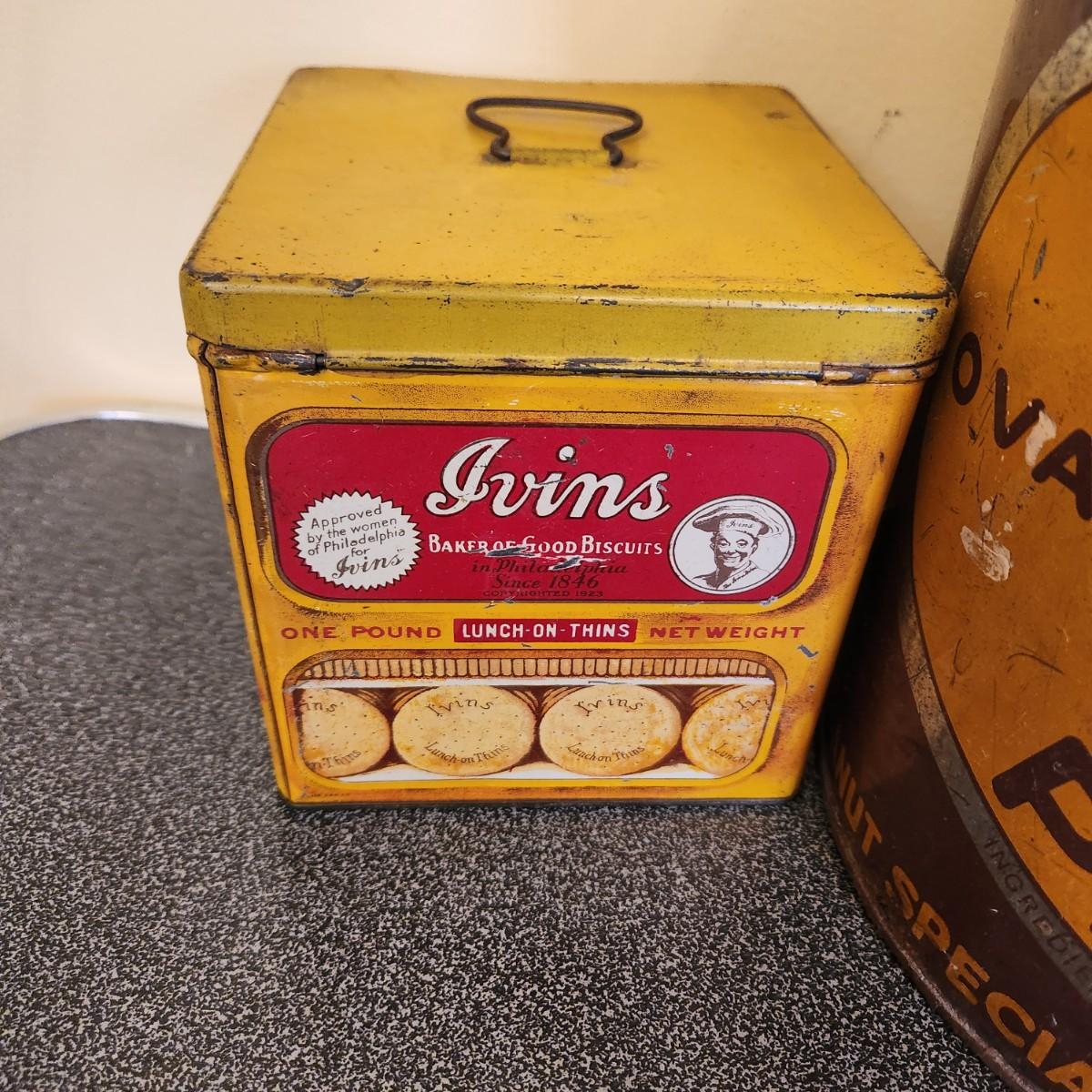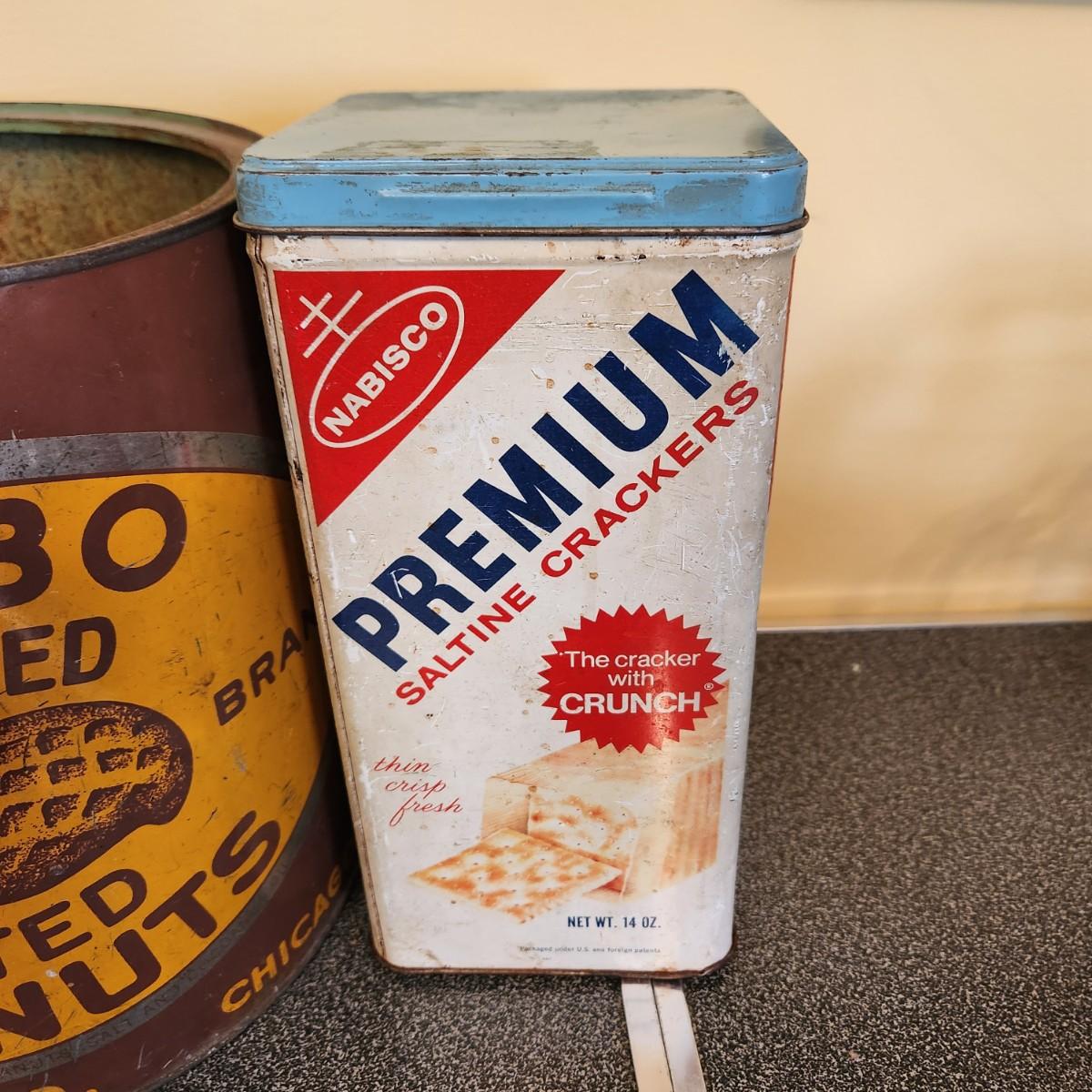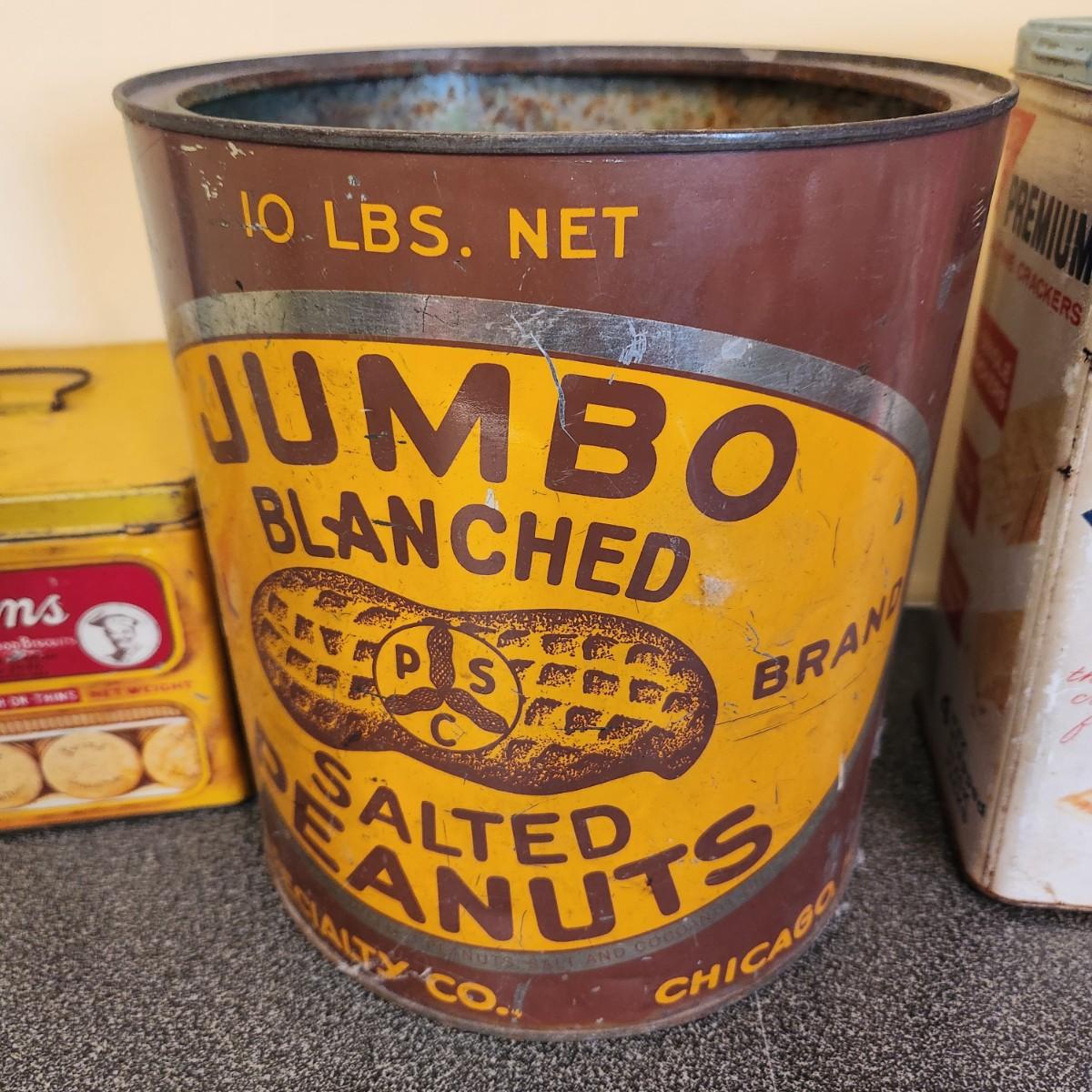 3 Tin Cans Ivins Biscuits, Nabisco, Oval Chicago Jumbo Salted Peanuts Can 10 lb.