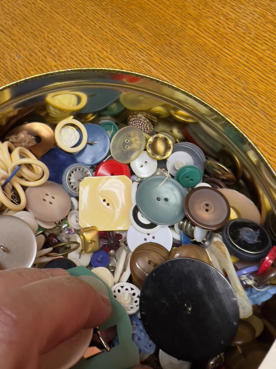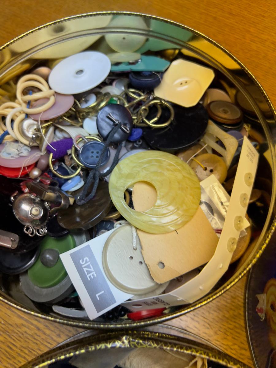 3 Tins of Buttons, Buttons, Buttons. Who's Got the Button?